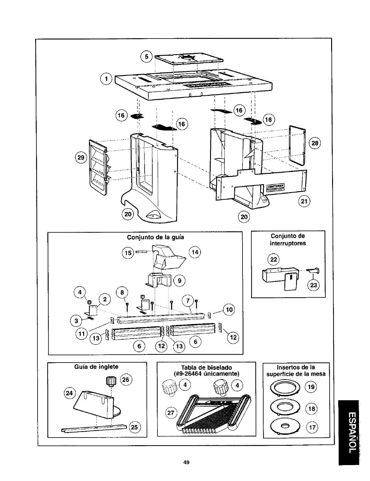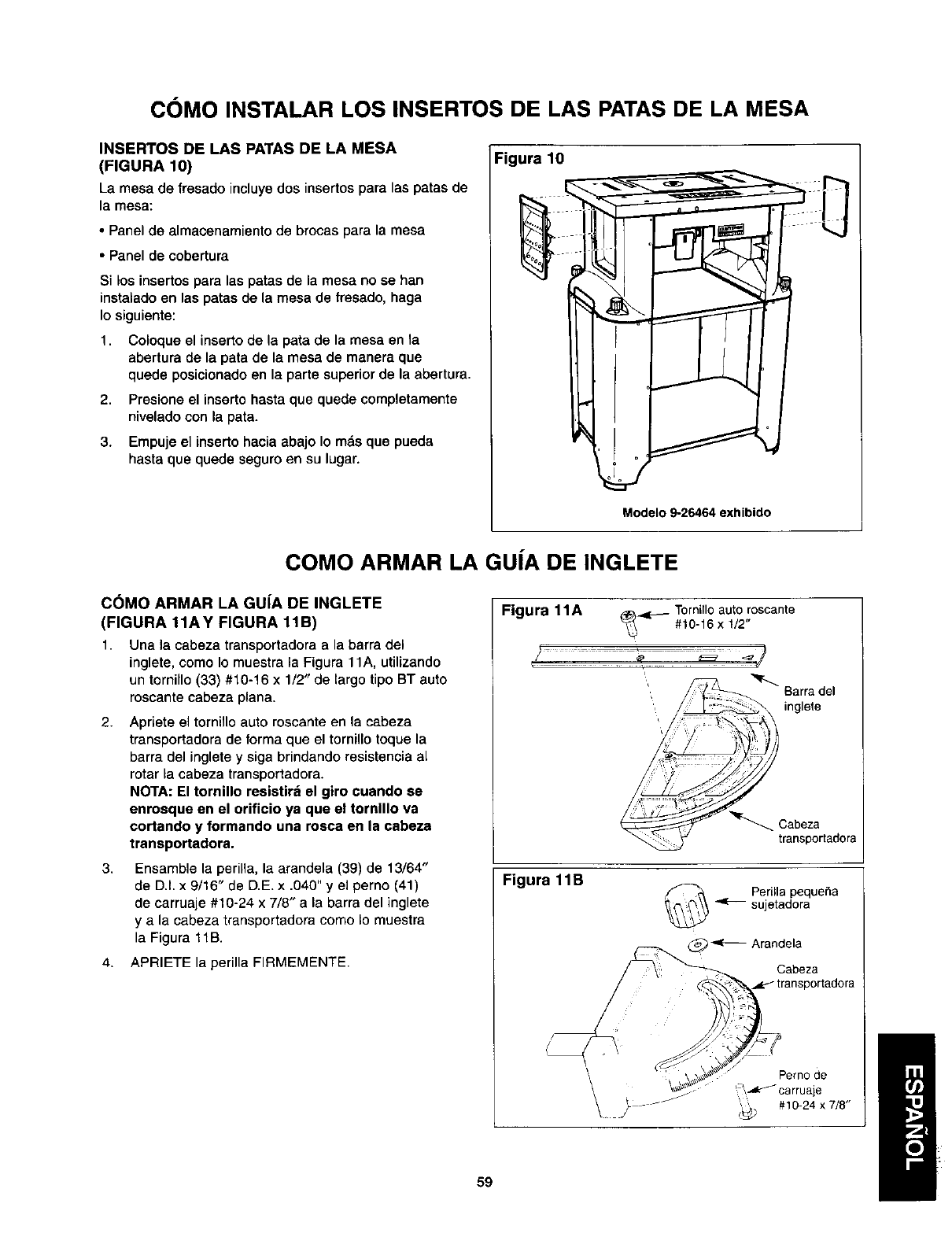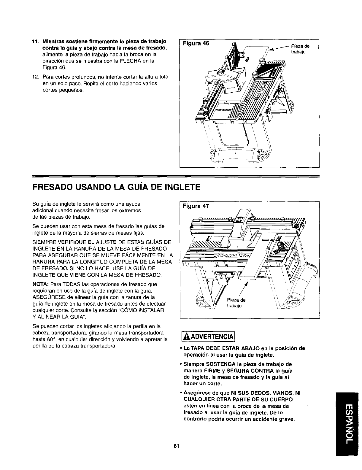 de inglete, la mesa de fresado y la guia al