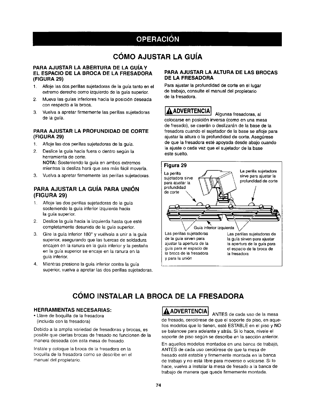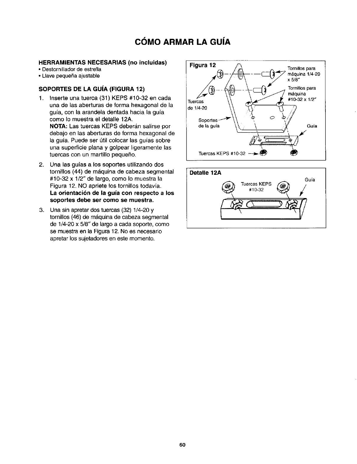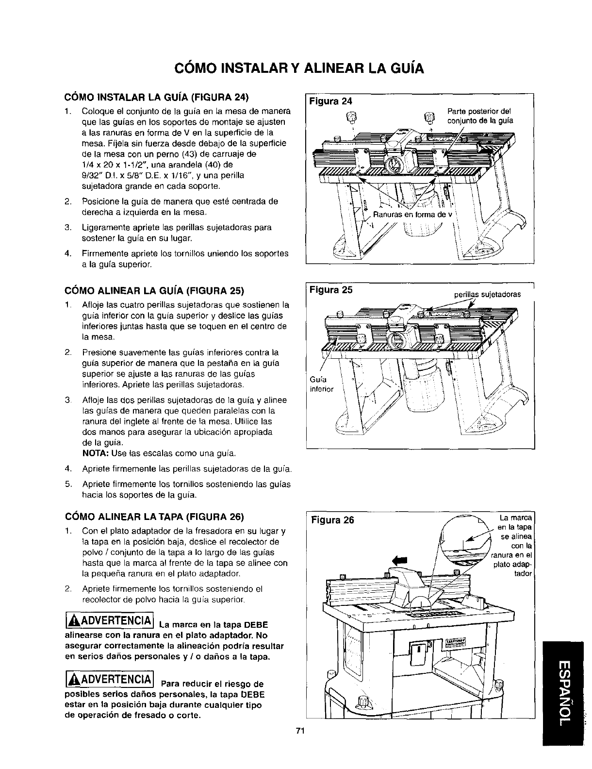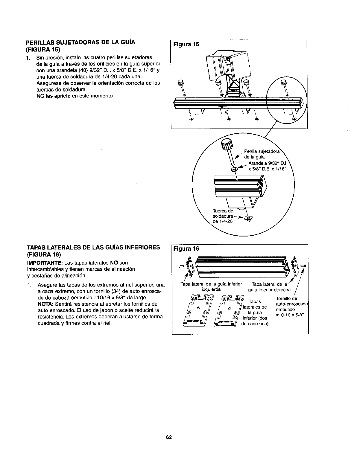 Si no Io estdn, afloje las perillas sujetadoras de la guia