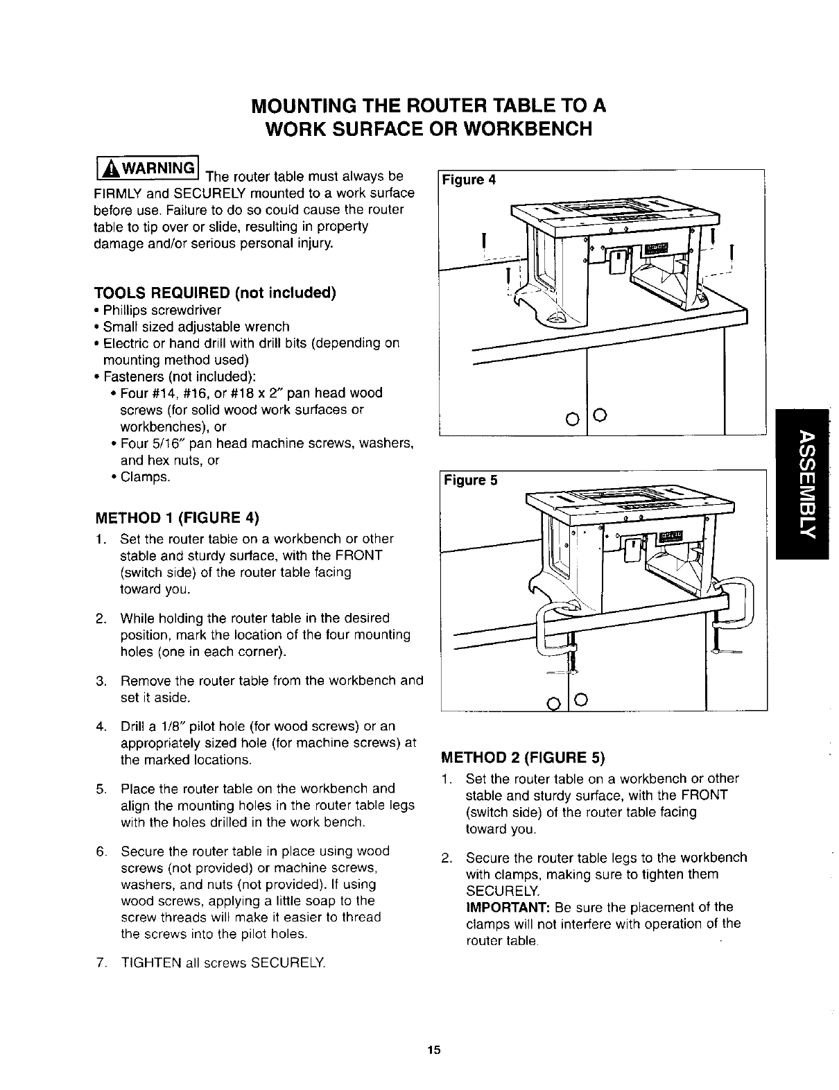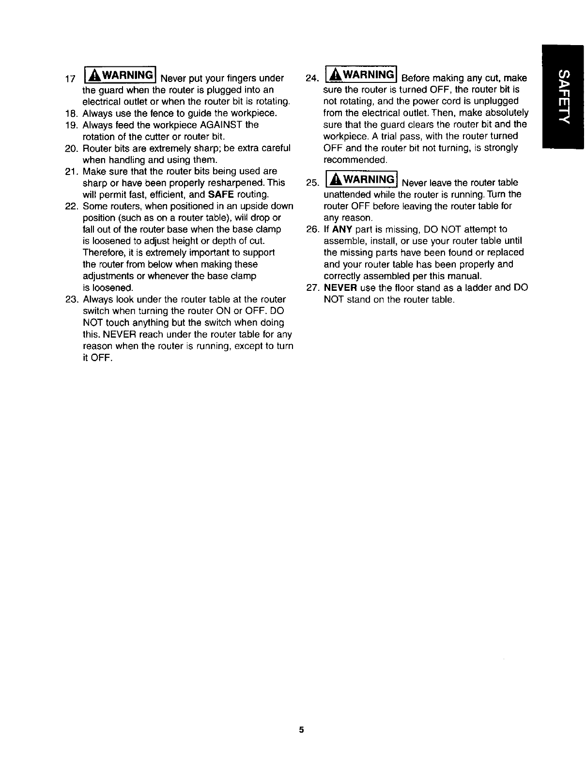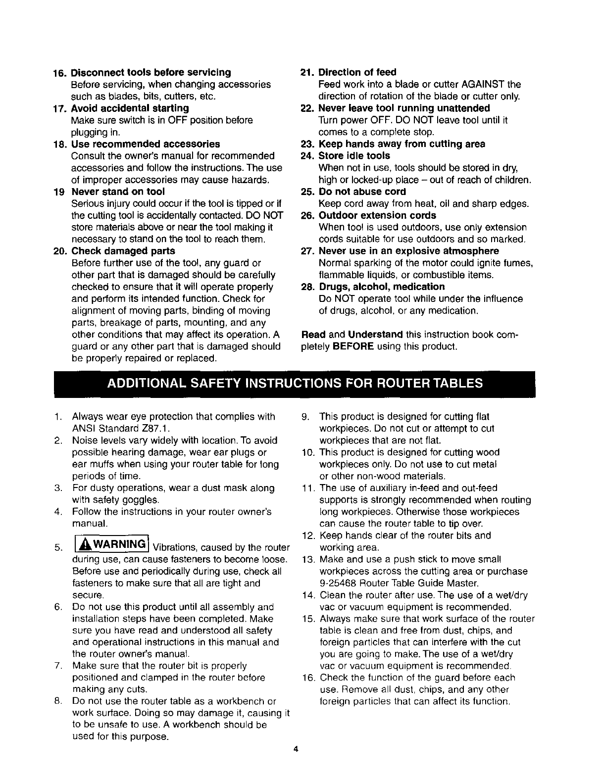 Additional Safety Instructions for Router Tables ........................................ 4