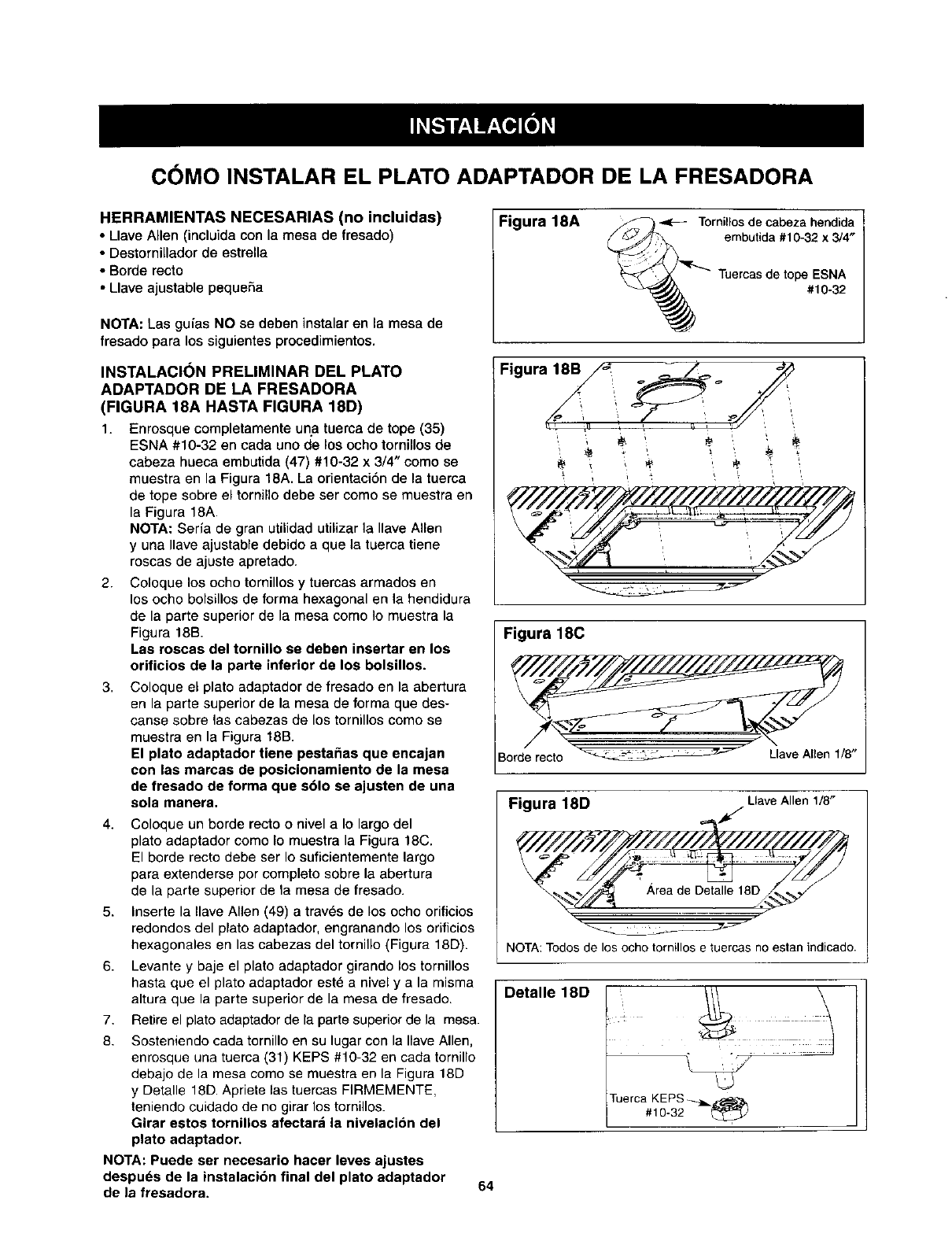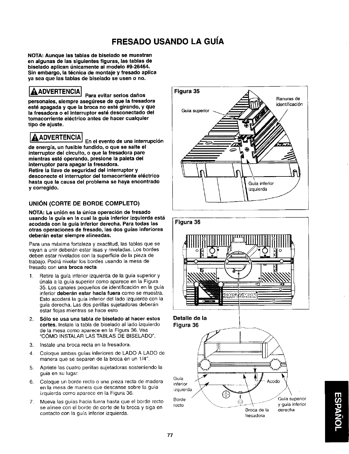 DE FRESADO. SI NO LO HACE, USE LA GUiA DE