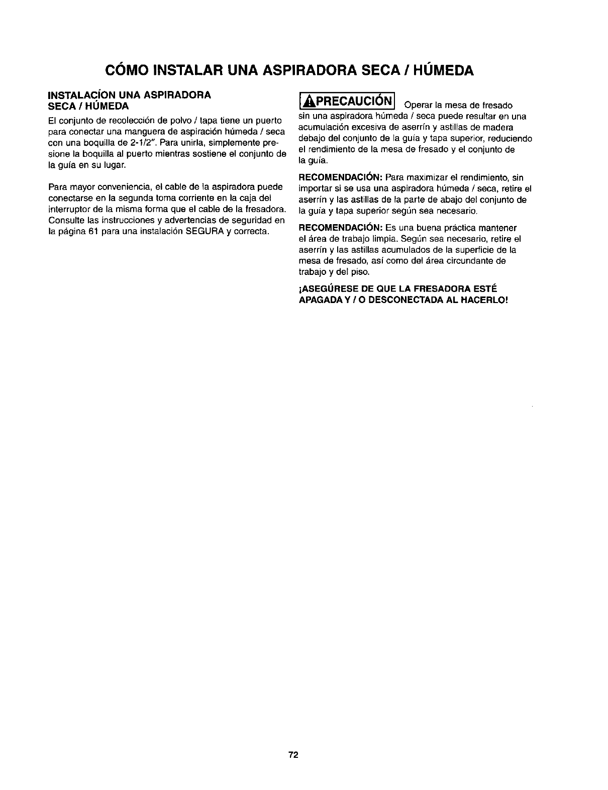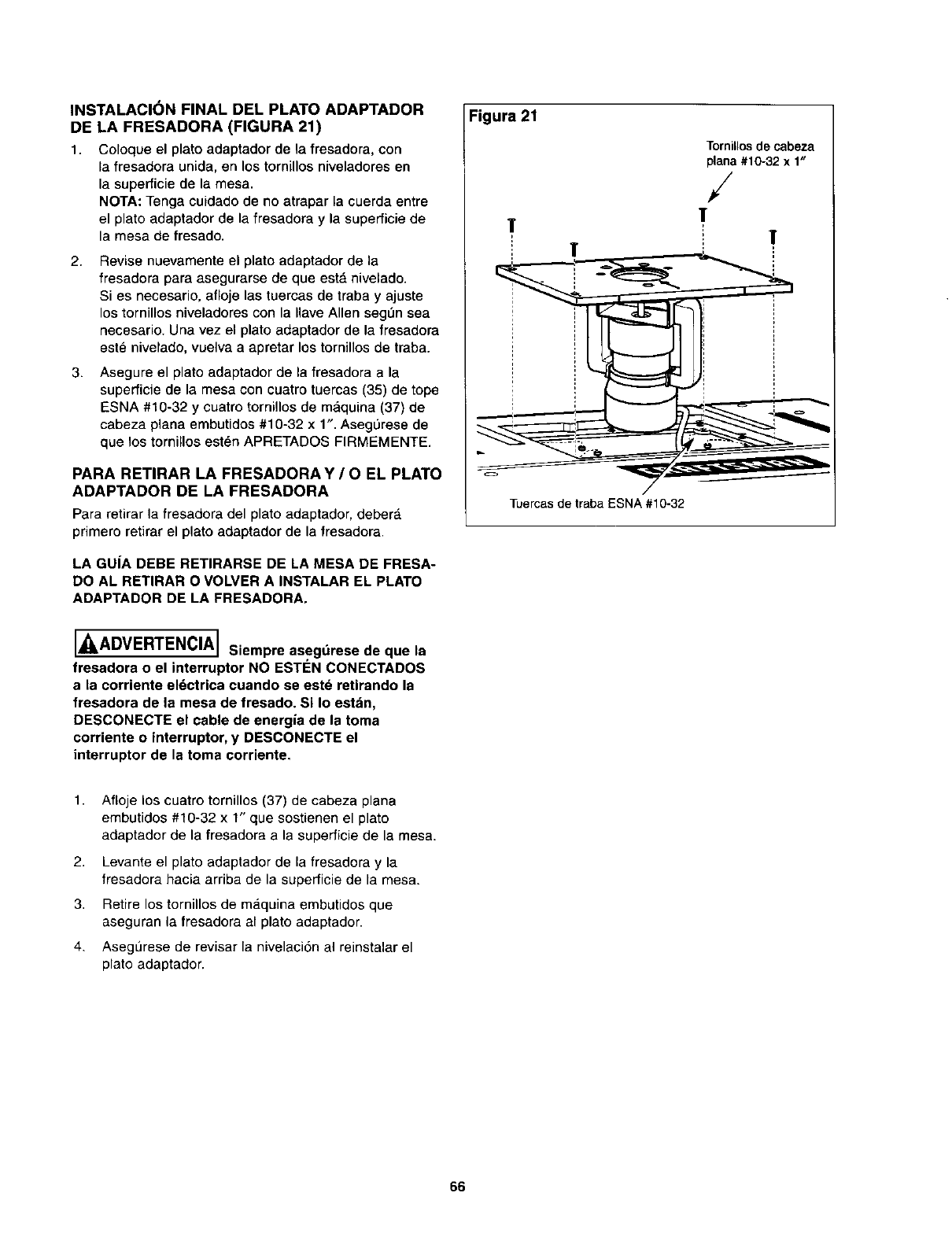 NOTA: Para TODAS las operaciones de fresado que