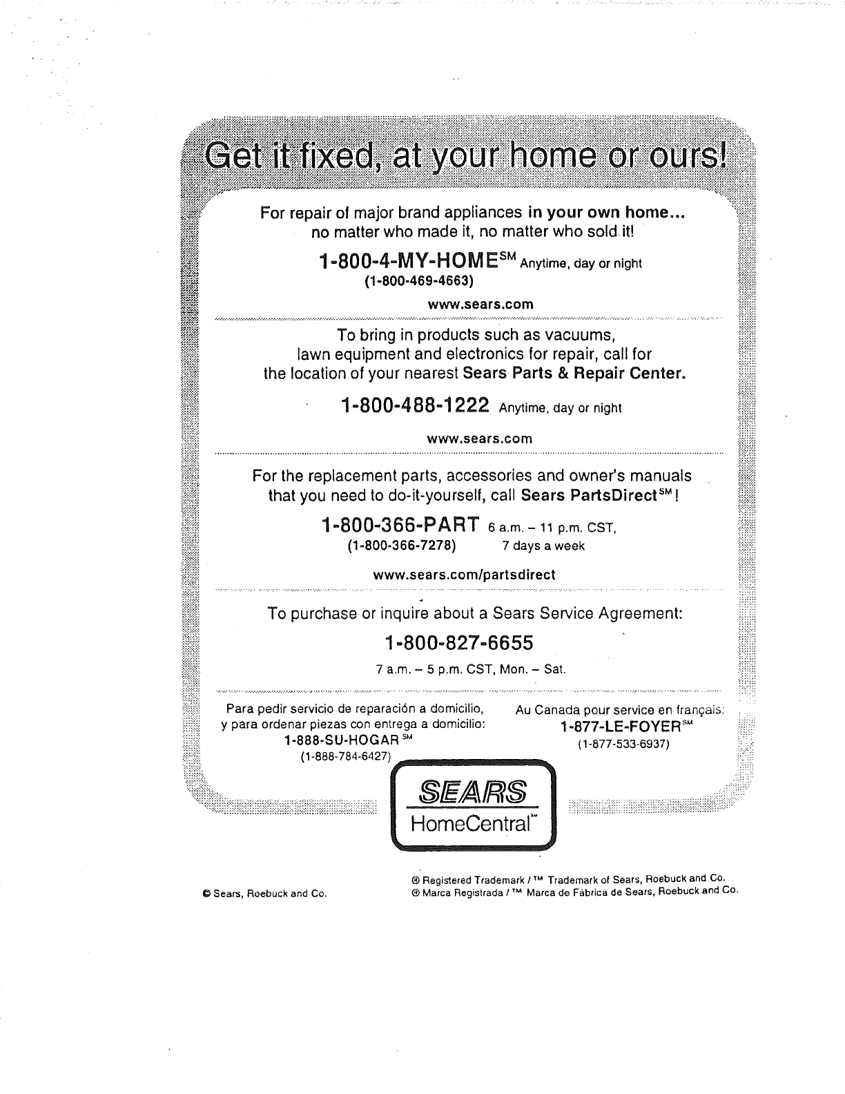 Sears, Roebuck and Co. ® Marca Registrada /'_ Marca de Fabrica de Sears, Roebuck and Co.