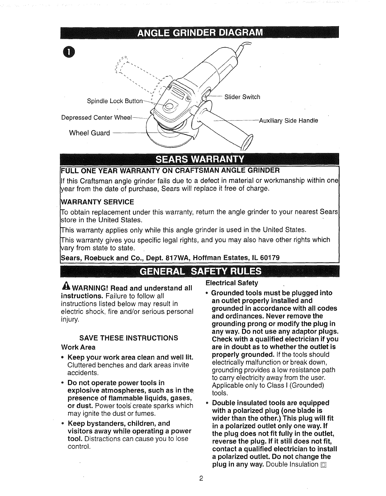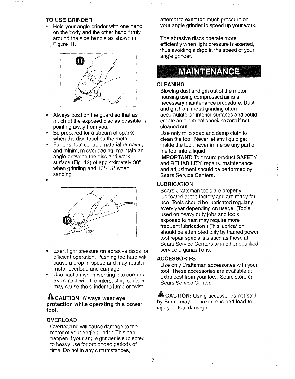 CRAFTSMAN Grinder Angle Manual L0811878 CRAFTSMAN Grinder Angle Owner's Manual, CRAFTSMAN Grinder Angle installation guides