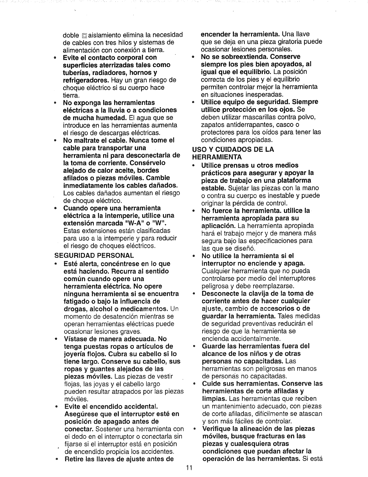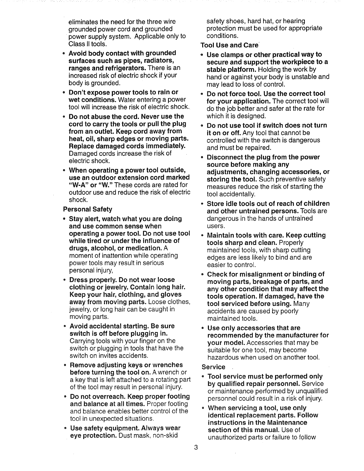 properly grounded. If the tools should