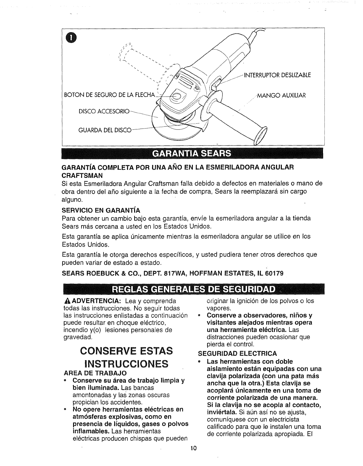 To obtain replacement under this warranty, return the angle grinder to your nearest Sears
