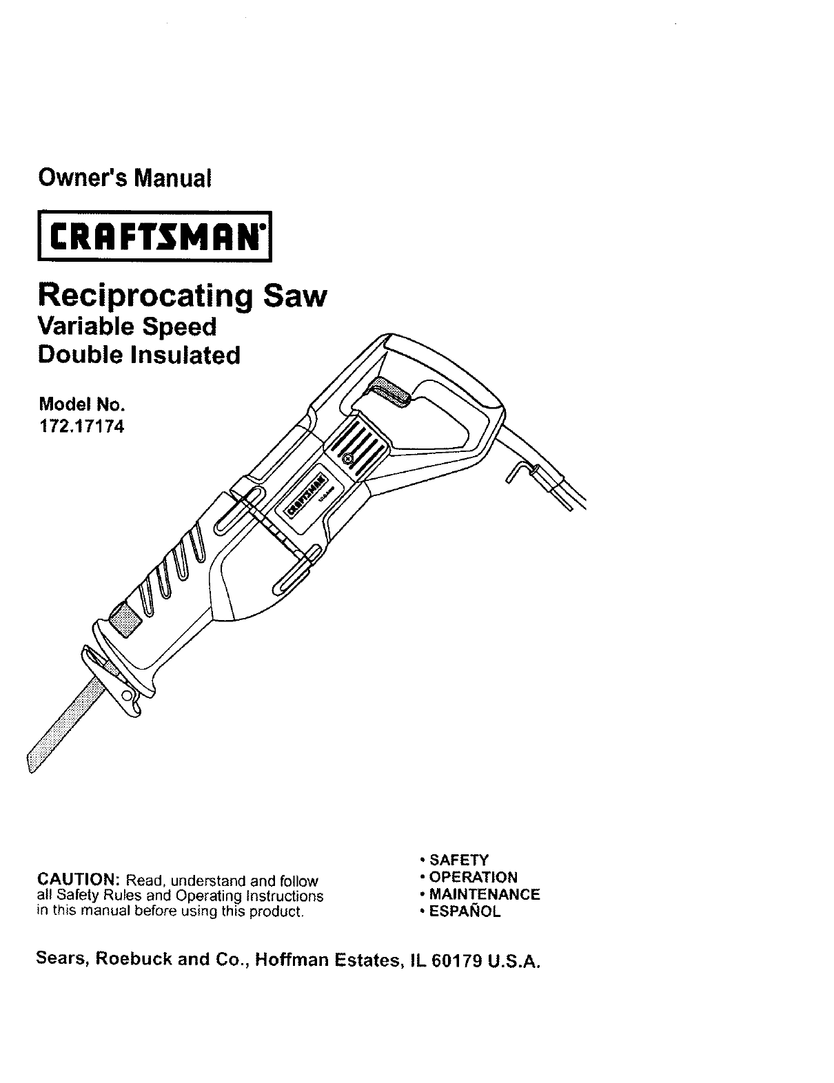 User Manual: Craftsman 17217174 17217174 CRAFTSMAN SAW - Manuals and Guides View the owners manual for your CRAFTSMAN SAW #17217174. Home:Tool Parts:Craftsman Parts:Craftsman SAW Manual