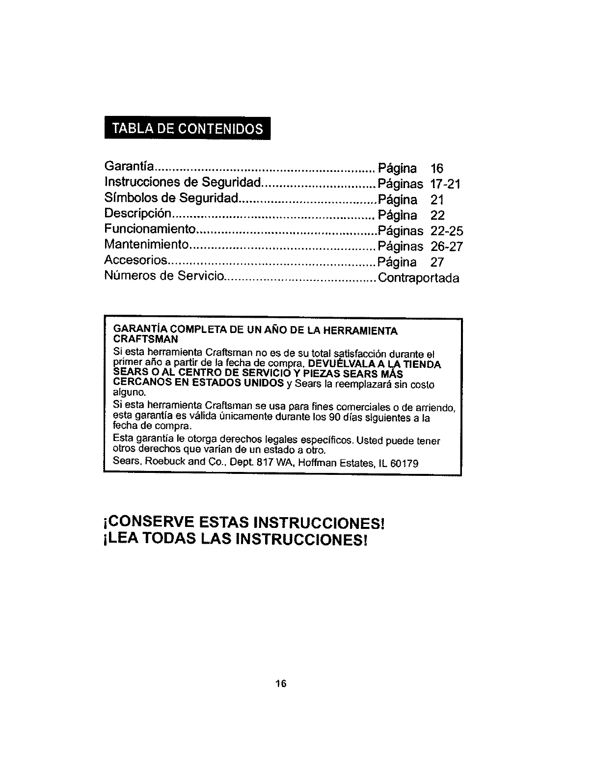 ONE FULLYEAR WARRANTY ON CRAFTSMAN TOOL