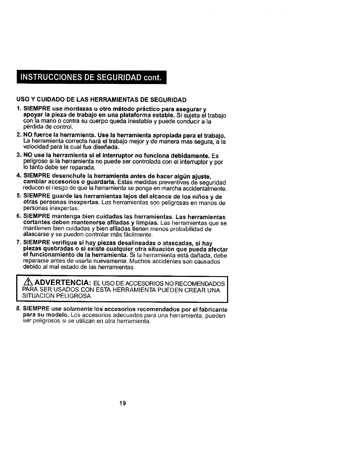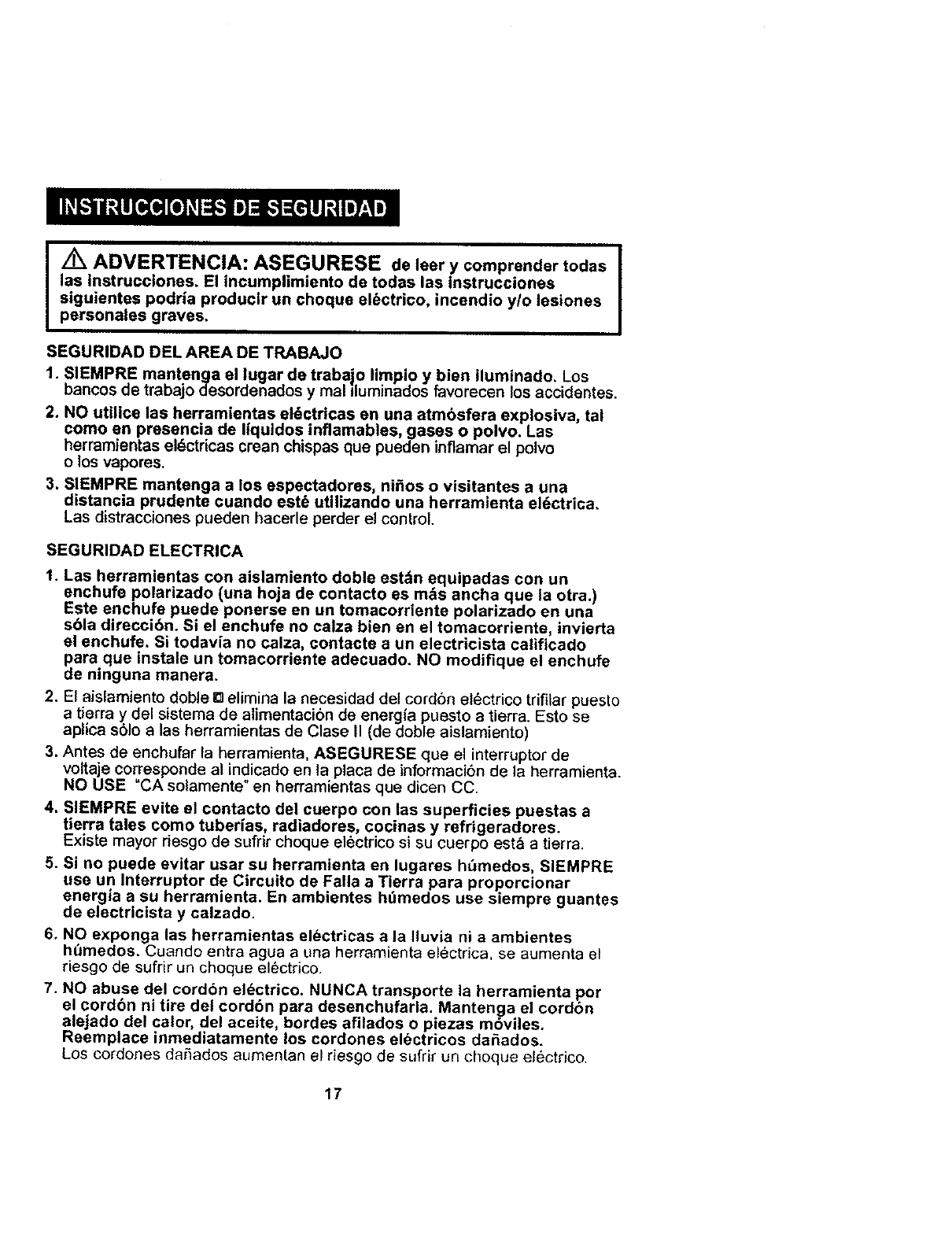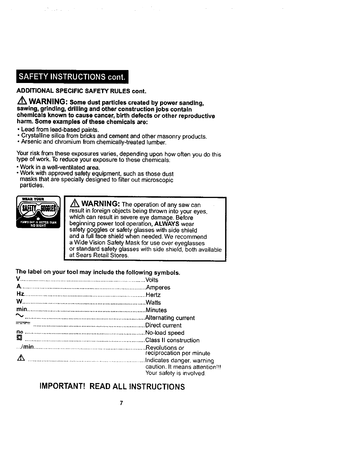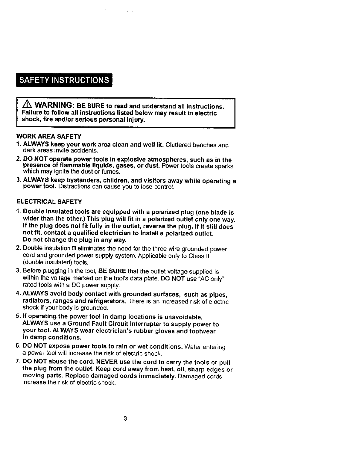 I/_ WARNING: BE SURE to read and understand all instructions. I