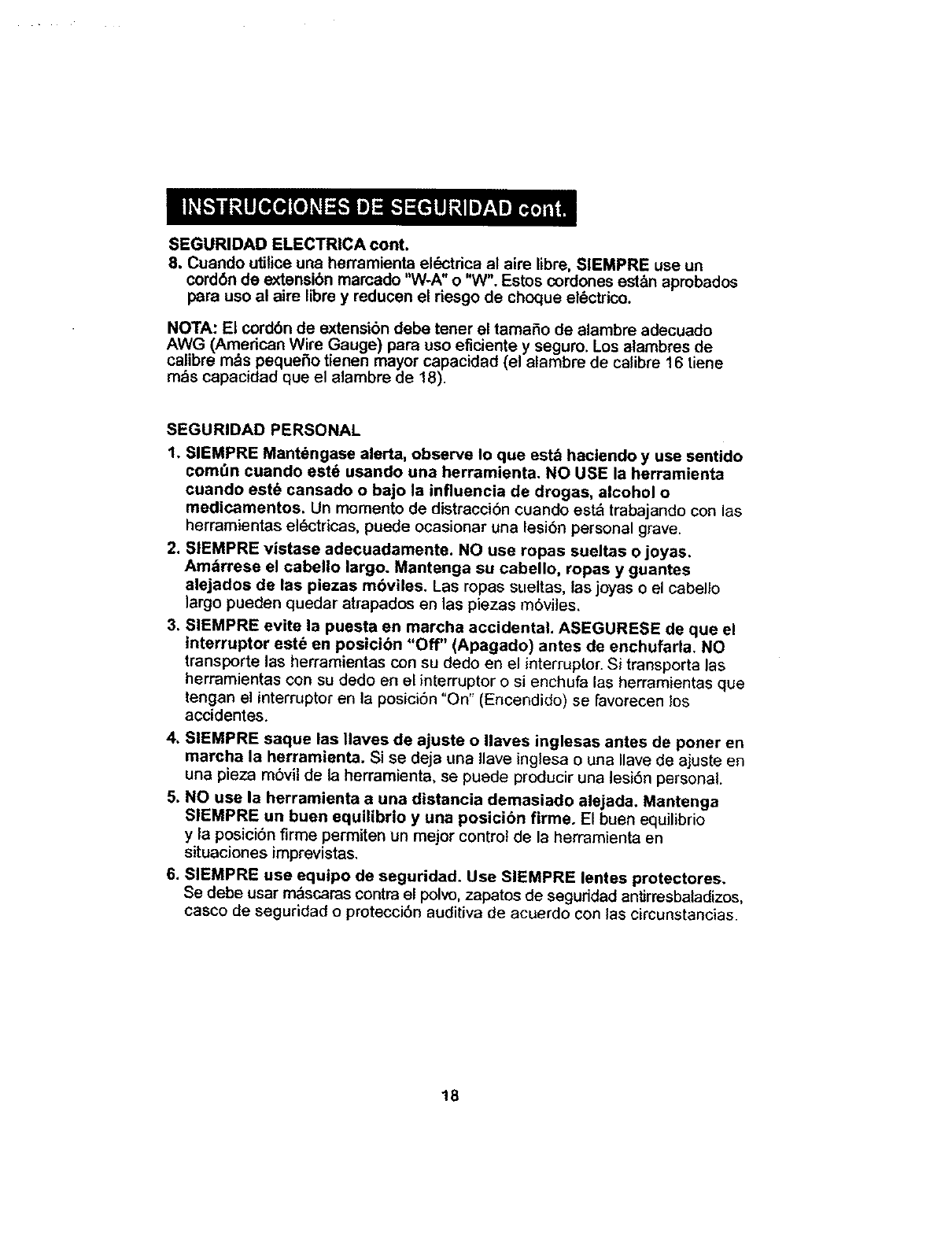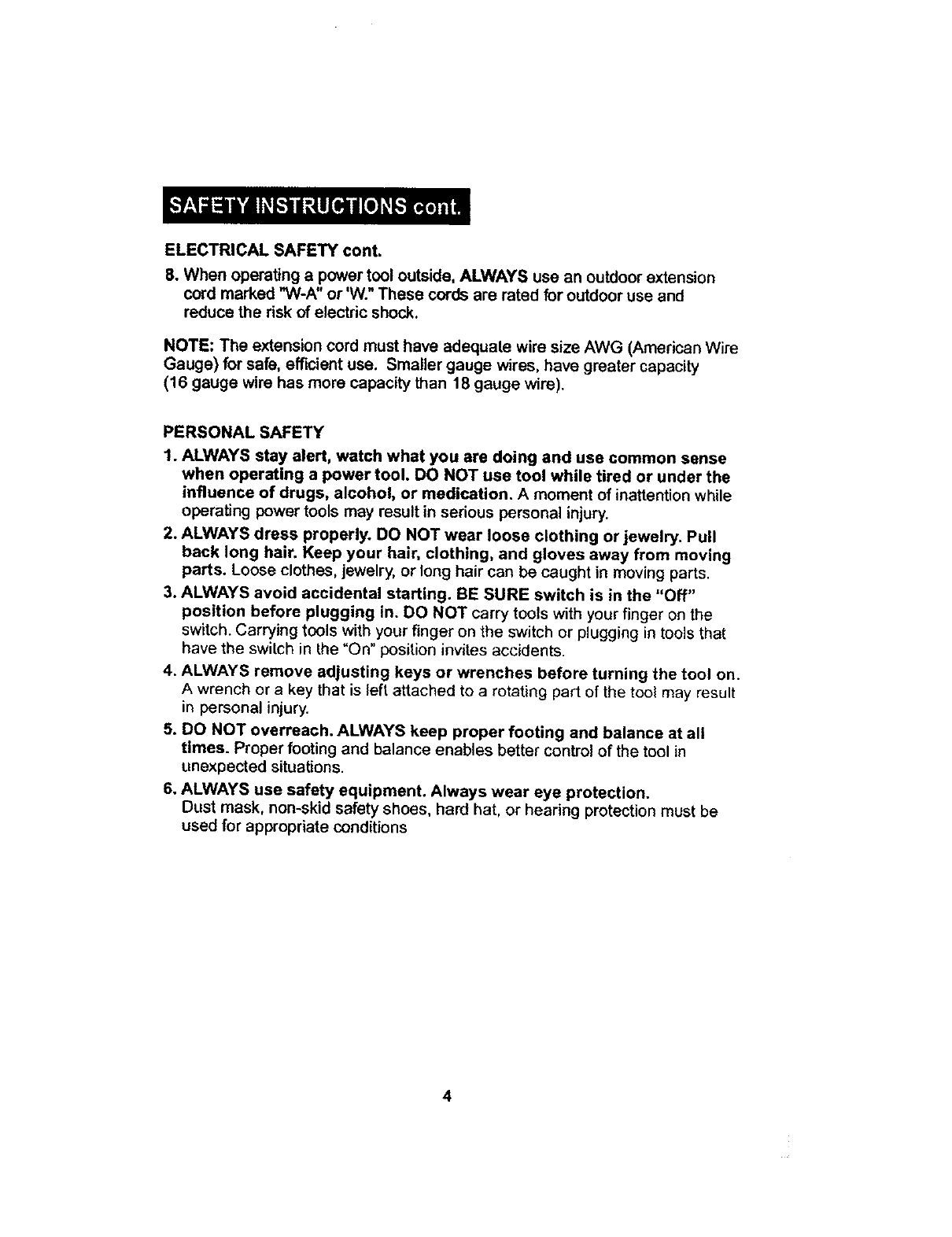 8. When operating a power tool outside, ALWAYS use an outdoor extension