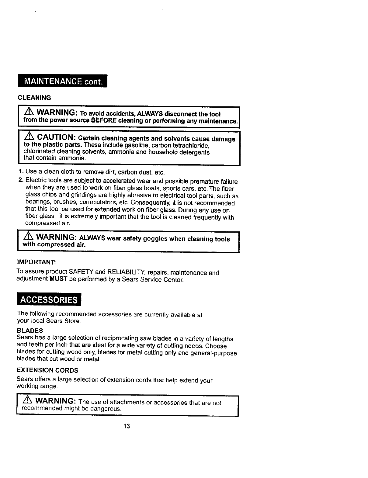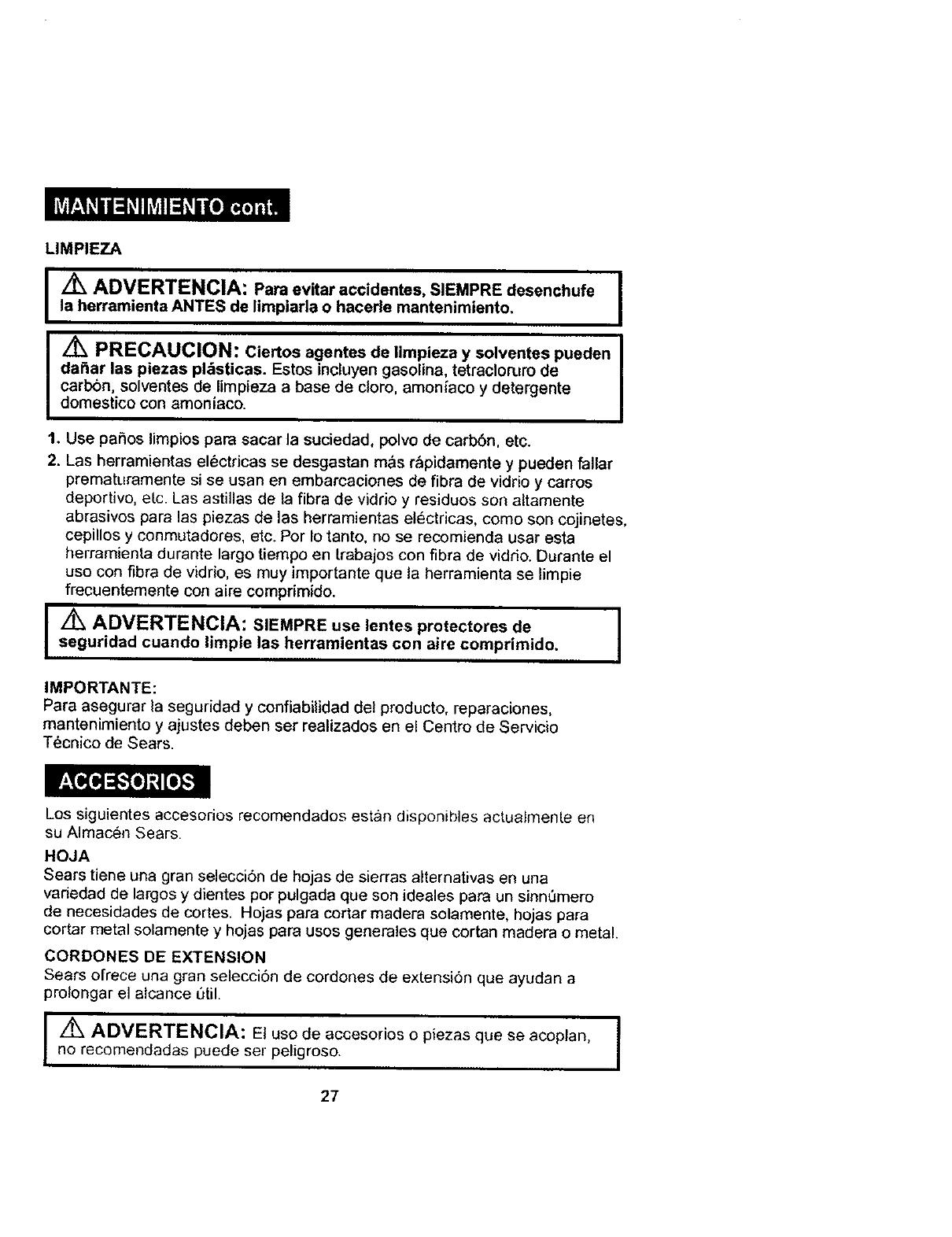 I _ ADVERTENCIA: Para evitar accidentes, SIEMPRE desenchufe Ila herramienta ANTES de limplarla o hacerle mantenimiento. I