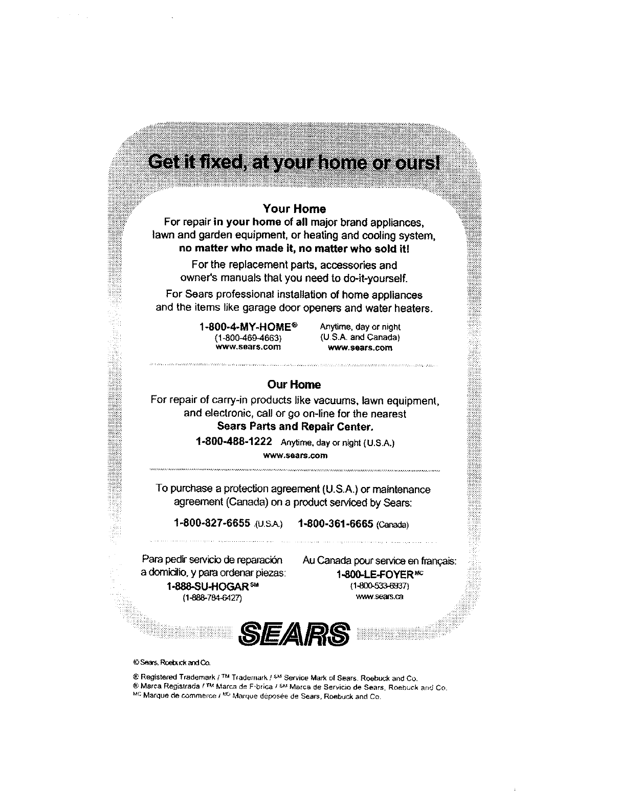 ® Registered Trademark !r_, Trademark /_._ Service Mark of Sears• Roebuck a_d CO.