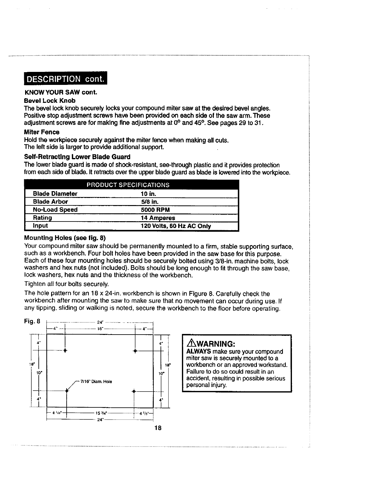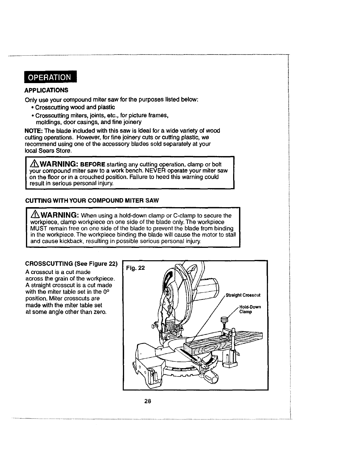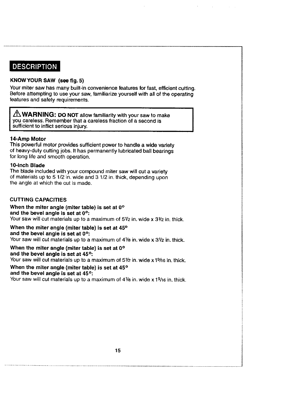 /'rk WARNING: The operation of any saw can result in