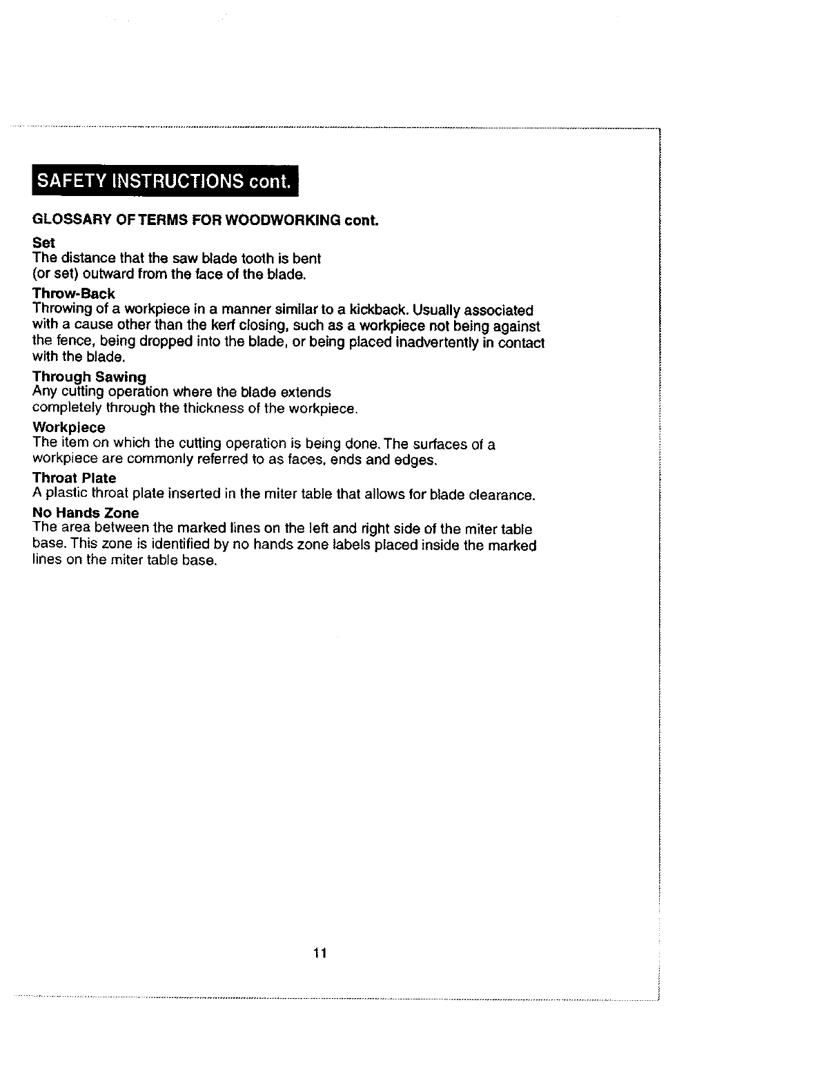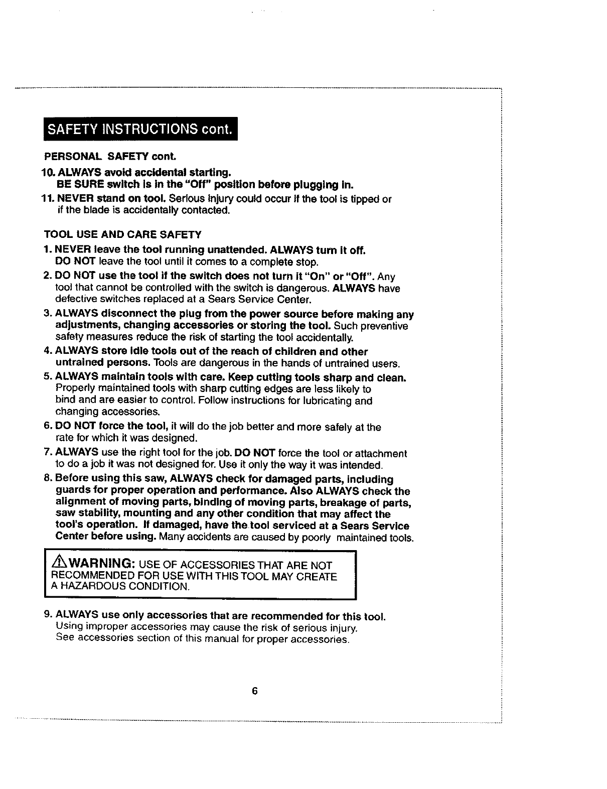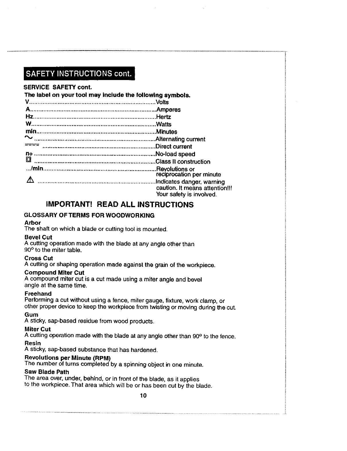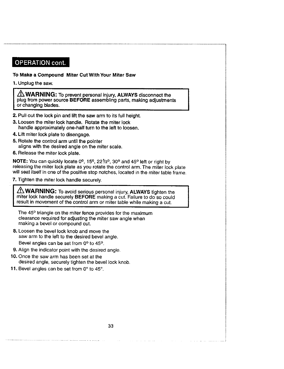 /'rk WARNING: The operation of any saw can result in