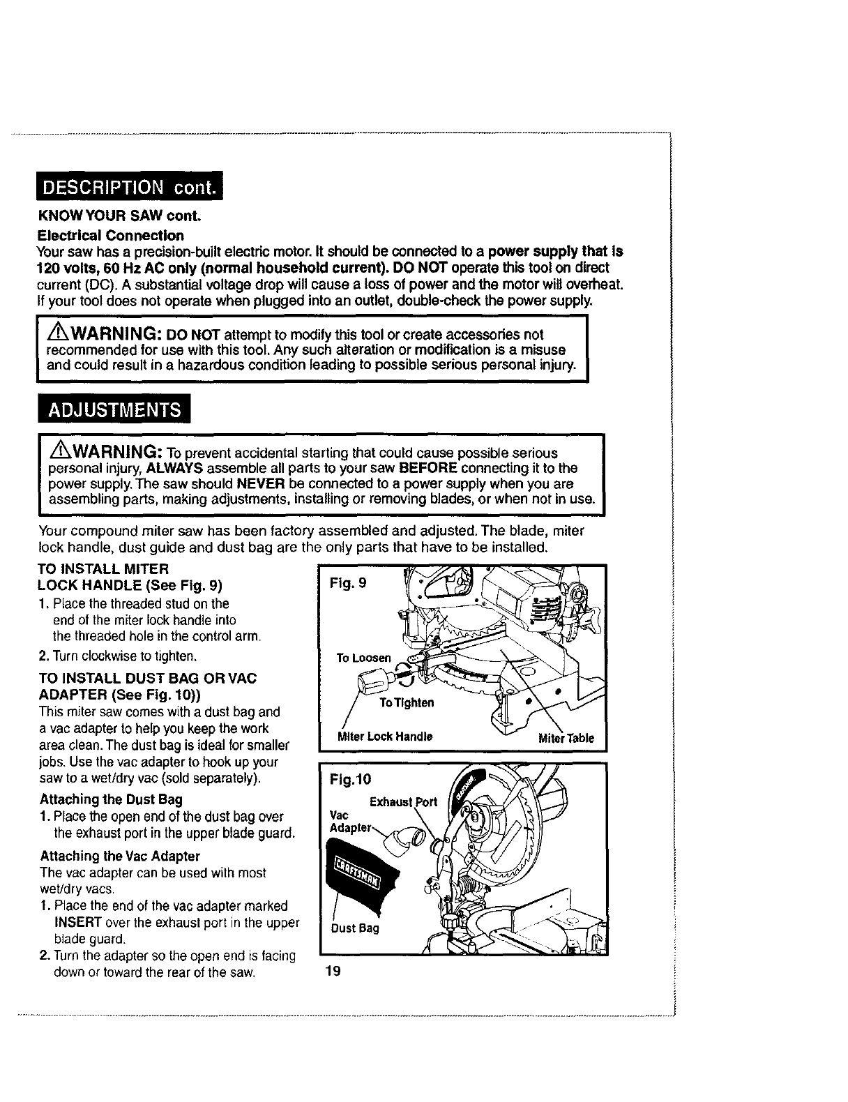 Craftsman 17224360 User Manual 10 COMPOUND MITER SAW Manuals And Guides L0408143