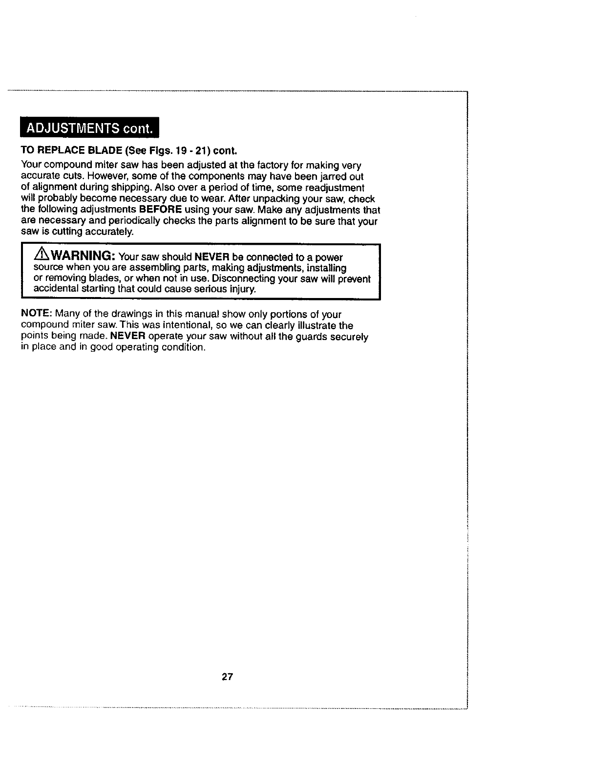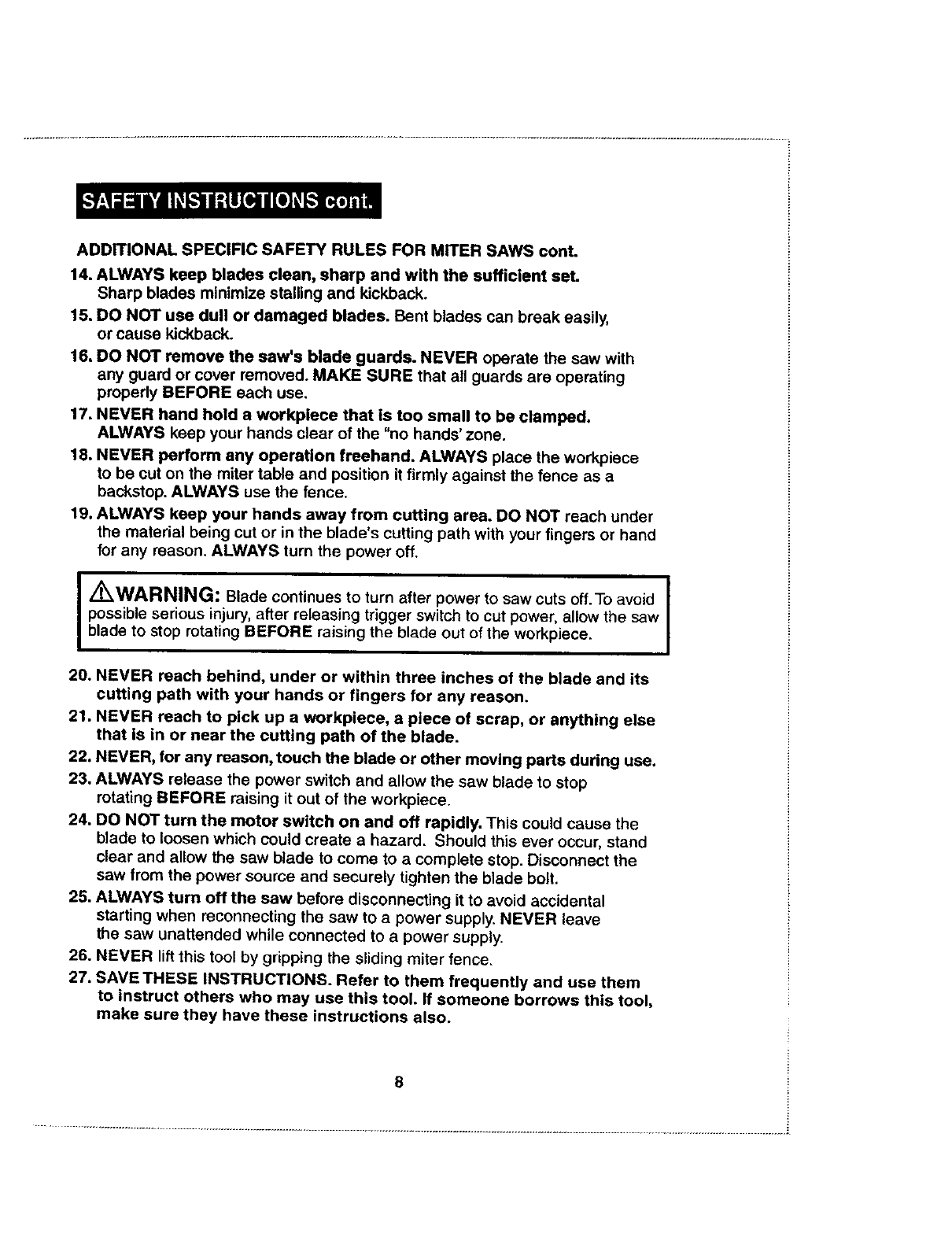 WARNING and CAUTION, BEFORE using this saw.