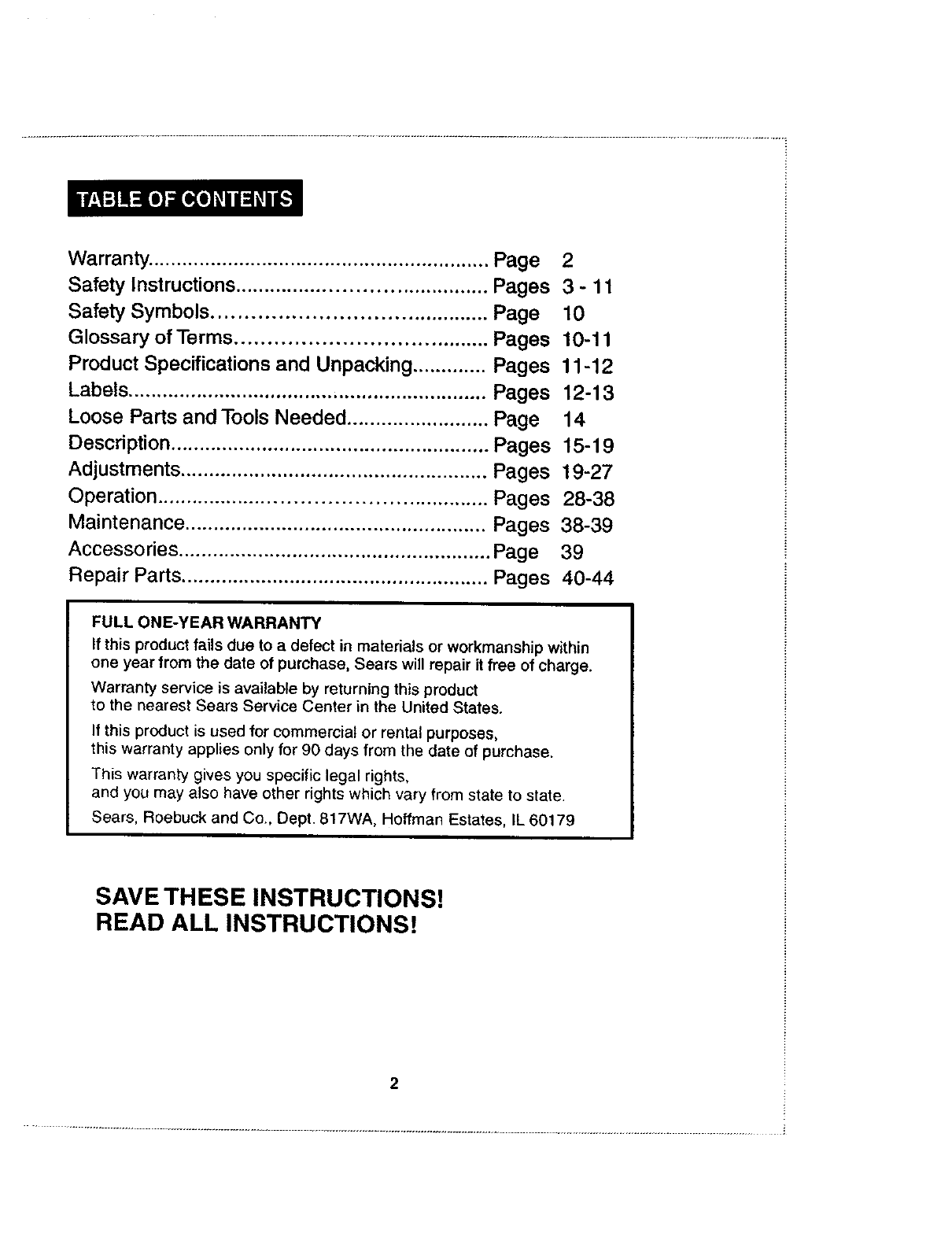 Repair Parts ...................................................... Pages 40-44