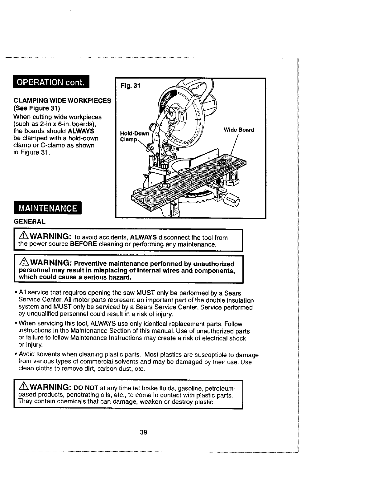 Maintenance ..................................................... Pages 38-39