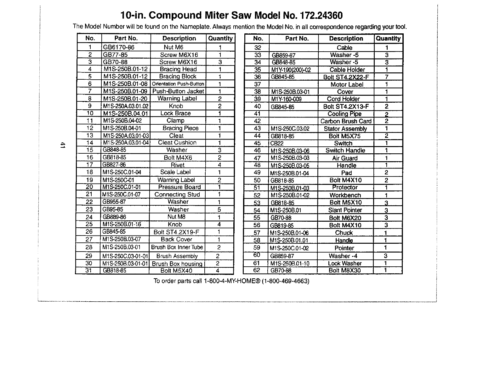 To order parts call 1-800-4-MY-HOME® (1-800-469-4663)