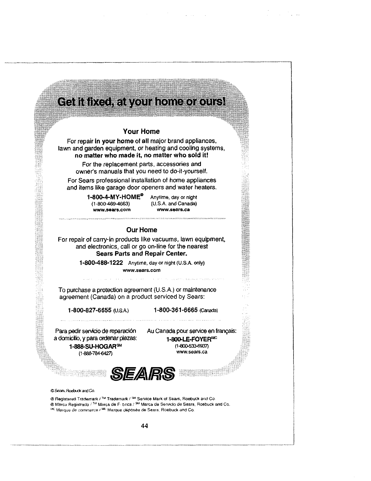 ® Registered Trademark /Tradomark /- Service Mark of Sears, Roebuck a_d CO