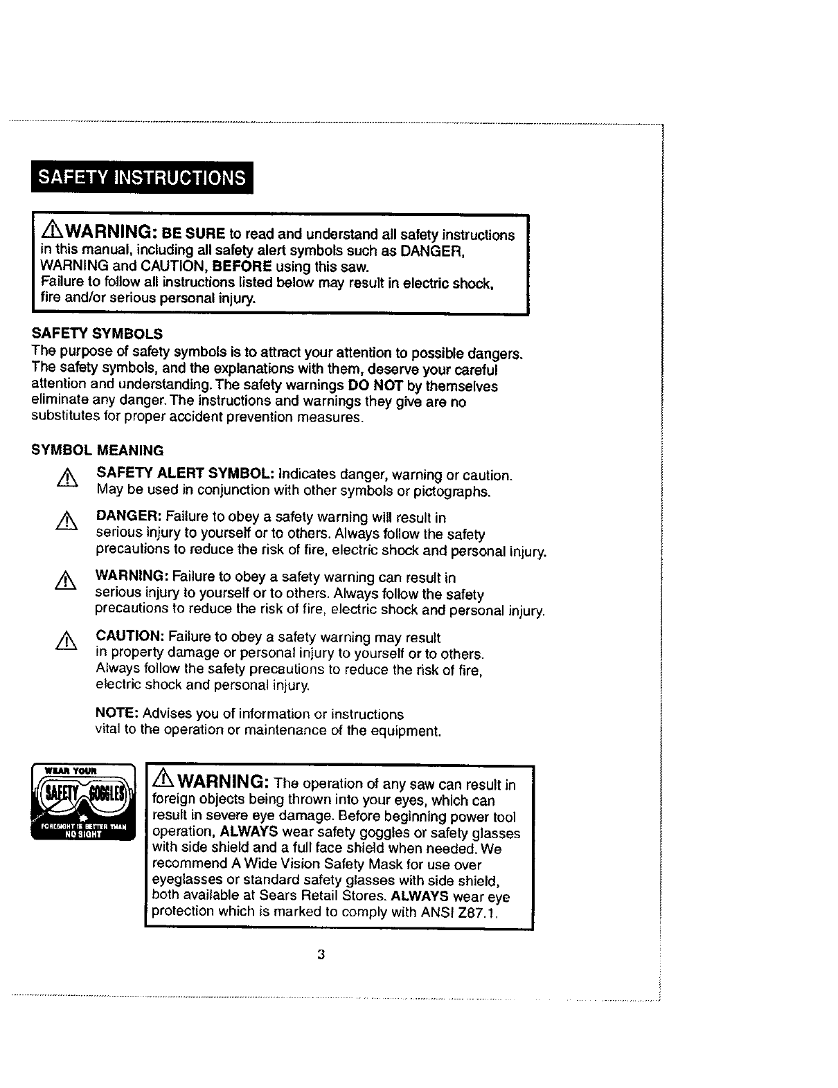 operation, ALWAYS wear safety goggles or safety glasses