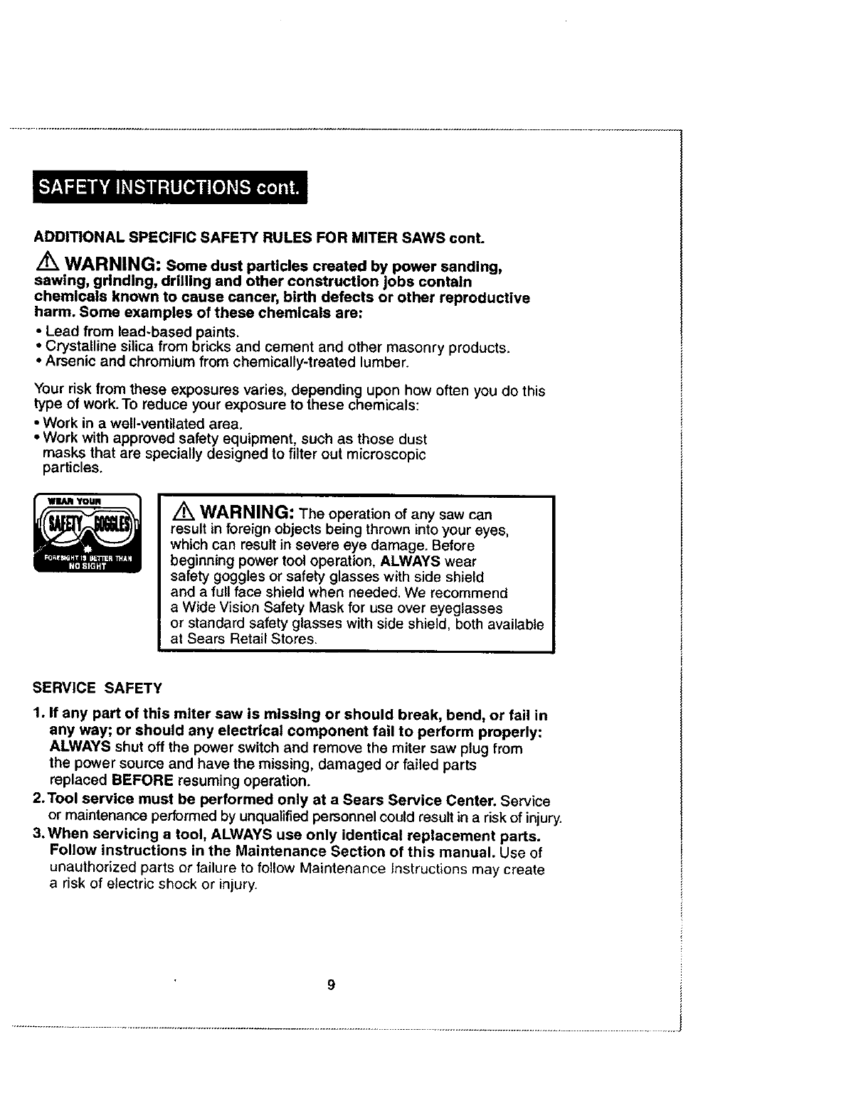 both available at Sears Retail Stores. ALWAYS wear eye