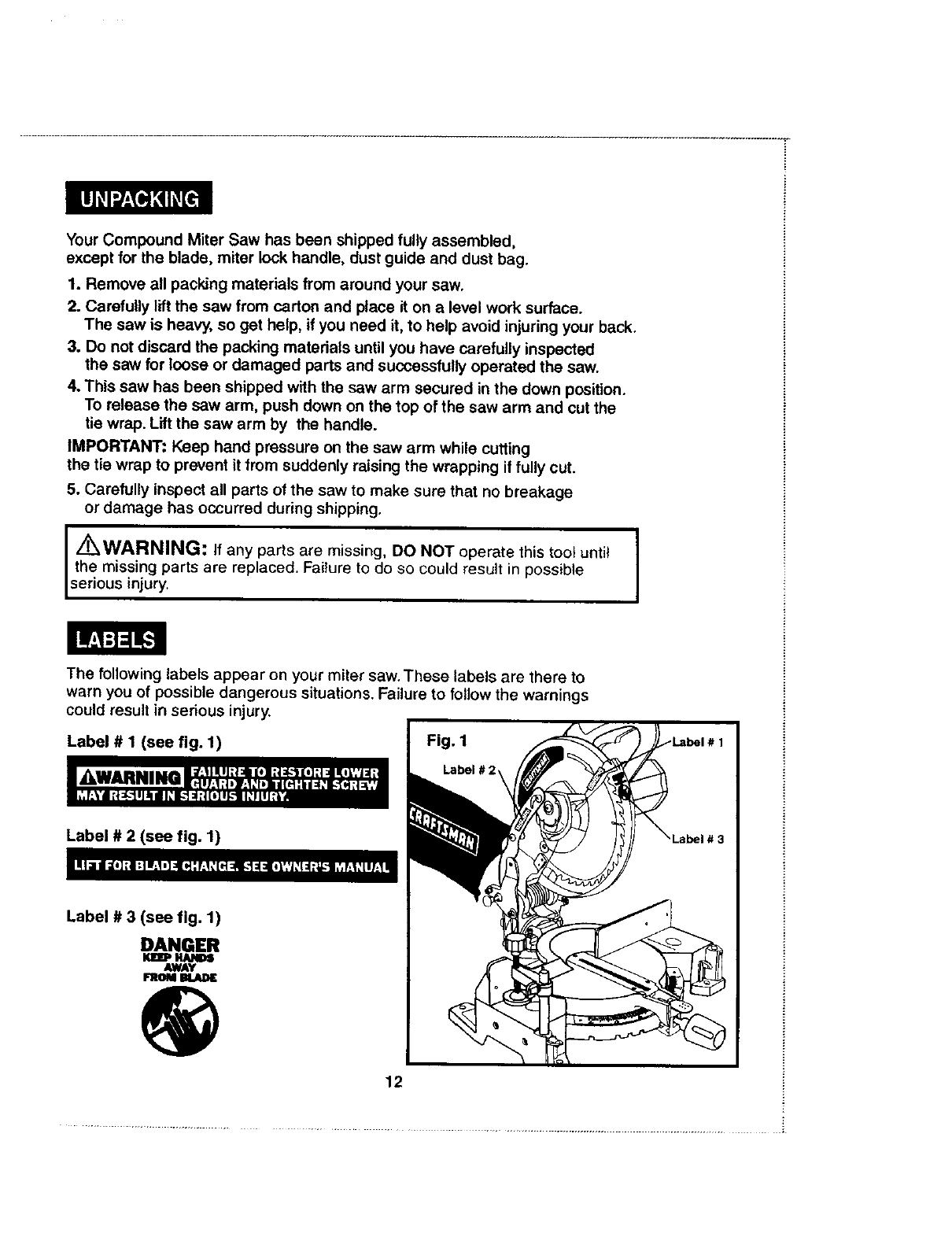 CRAFTSMAN Miter Saw Manual L0408143 CRAFTSMAN Miter Saw Owner's Manual, CRAFTSMAN Miter Saw installation guides