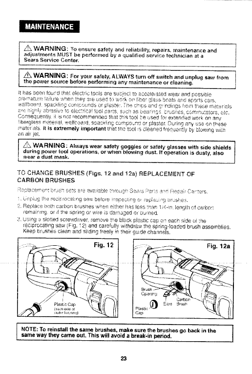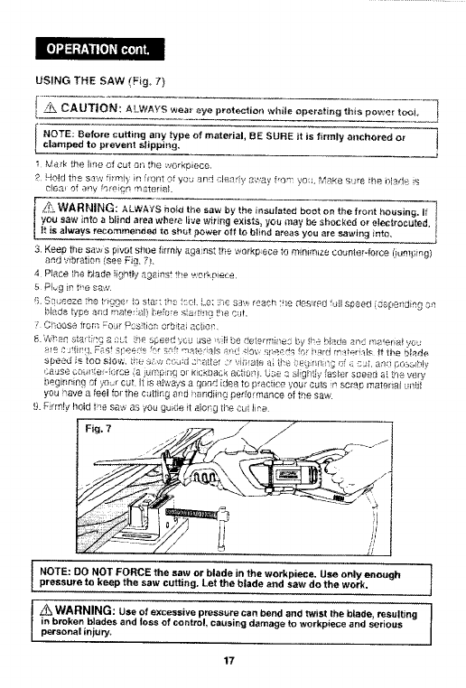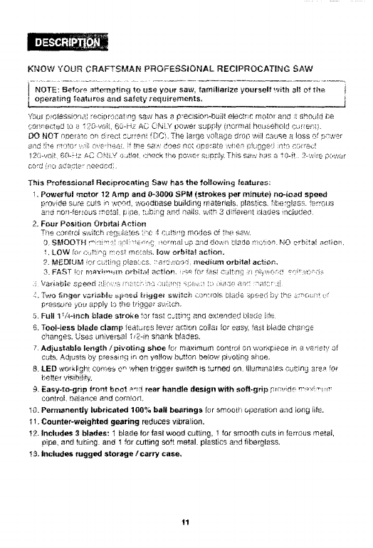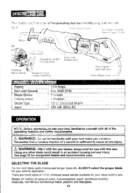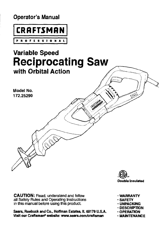 Craftsman 17225290 User Manual RECIPROCATING SAW Manuals And Guides L0911487