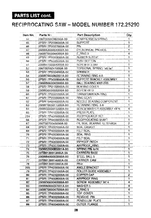 RECIPROCATING SAW - MODEL NUMBER !72.25290