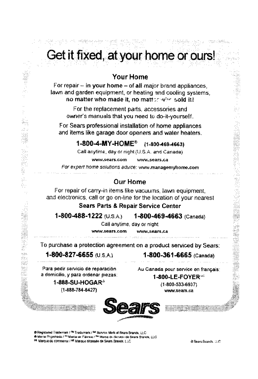 Sears Repair ma_s Phone Numbers ..................................................... Back Cover