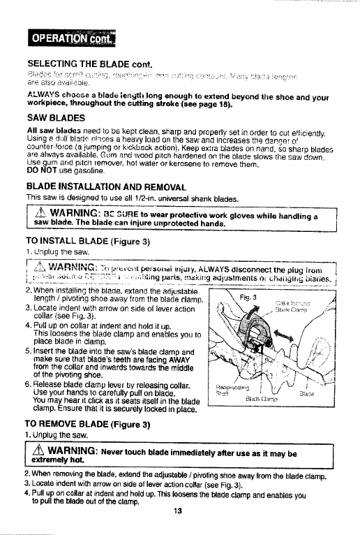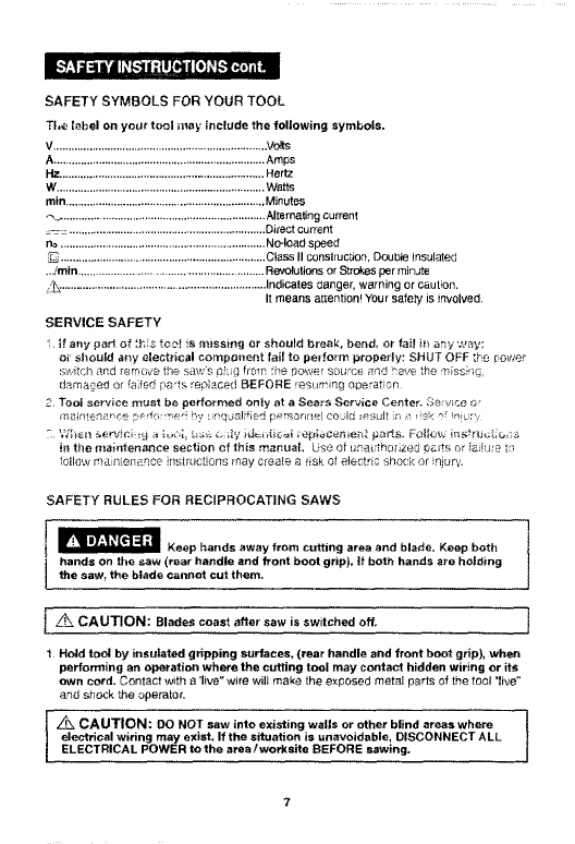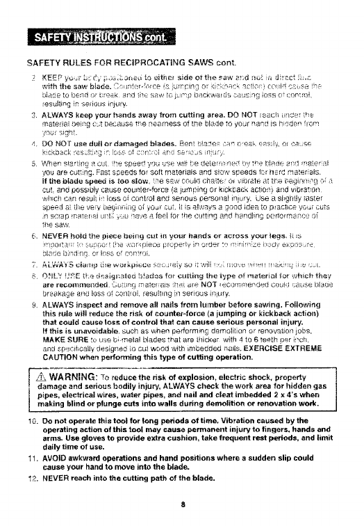 CRAFTSMAN Saw Reciprocating Manual L0911487 CRAFTSMAN Saw Reciprocating Owner's Manual, CRAFTSMAN Saw Reciprocating installation guides