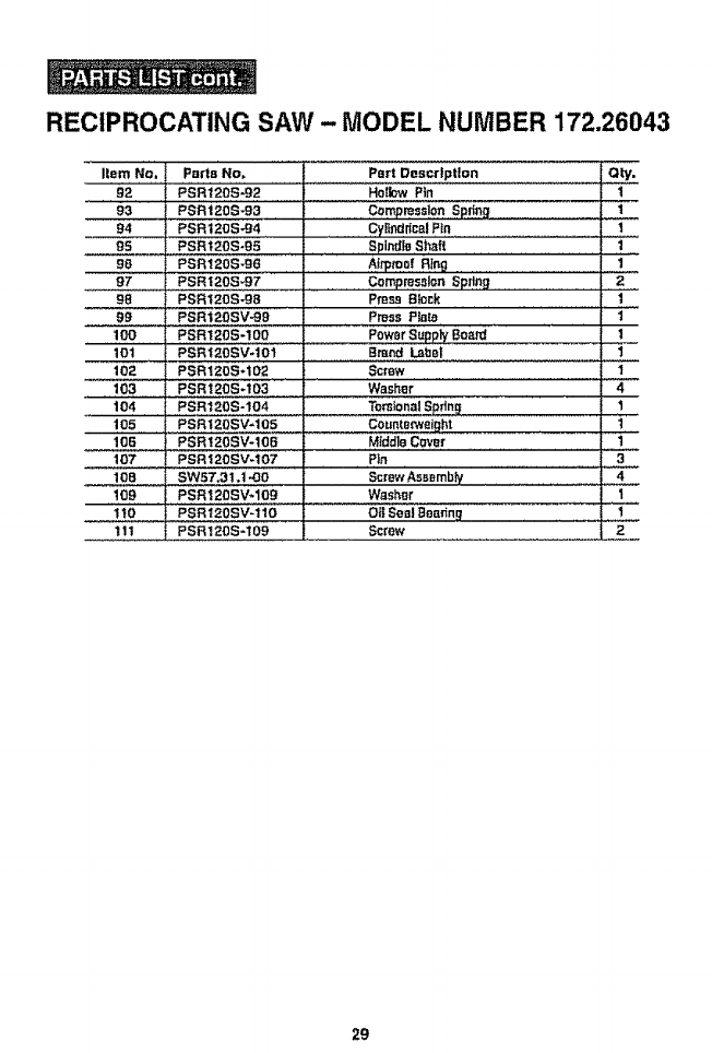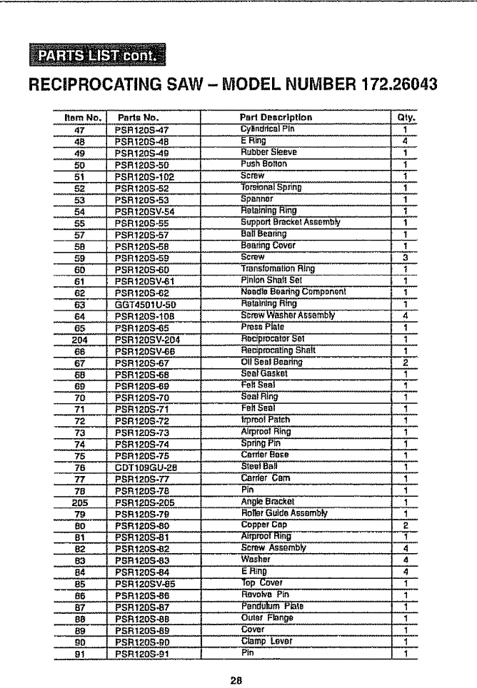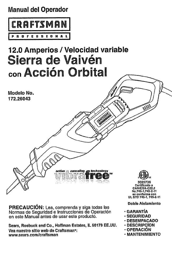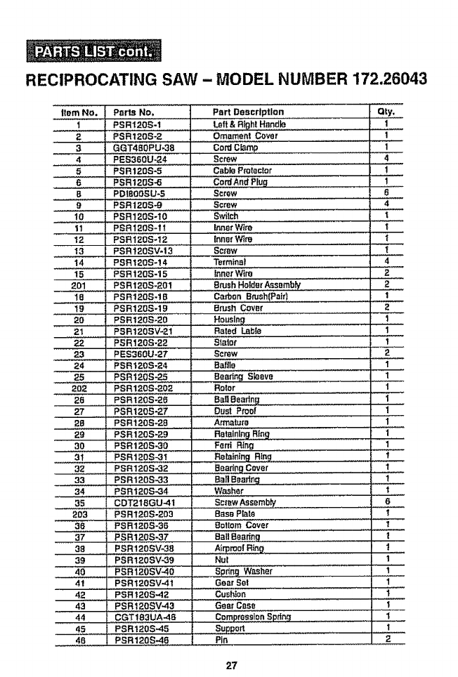 User Manual: Craftsman 172260430 172260430 CRAFTSMAN SAW RECIPROCATING - Manuals and Guides View the owners manual for your CRAFTSMAN SAW RECIPROCATING #172260430. Home:Tool Parts:Craftsman Parts:Craftsman SAW RECIPROCATING Manual
