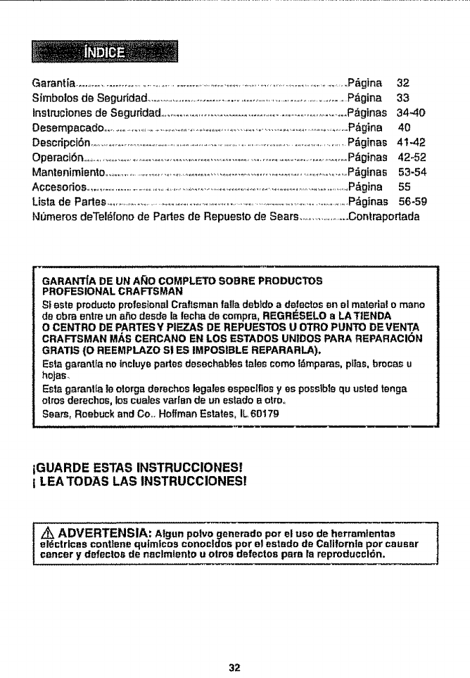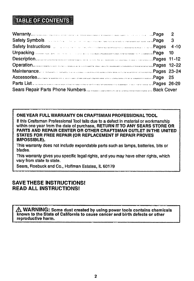 I _ WARNING: BE SURE to read and understand all instructions in thta manual