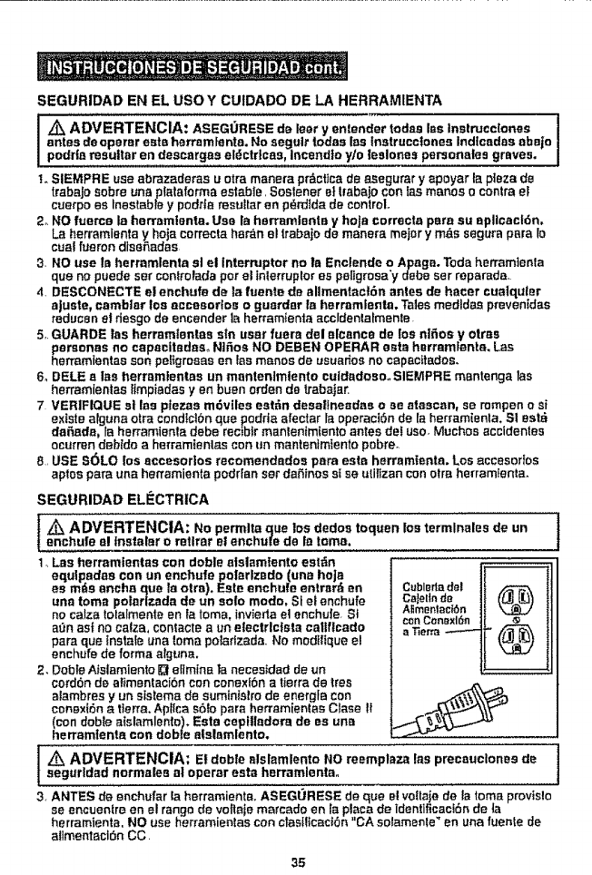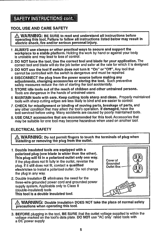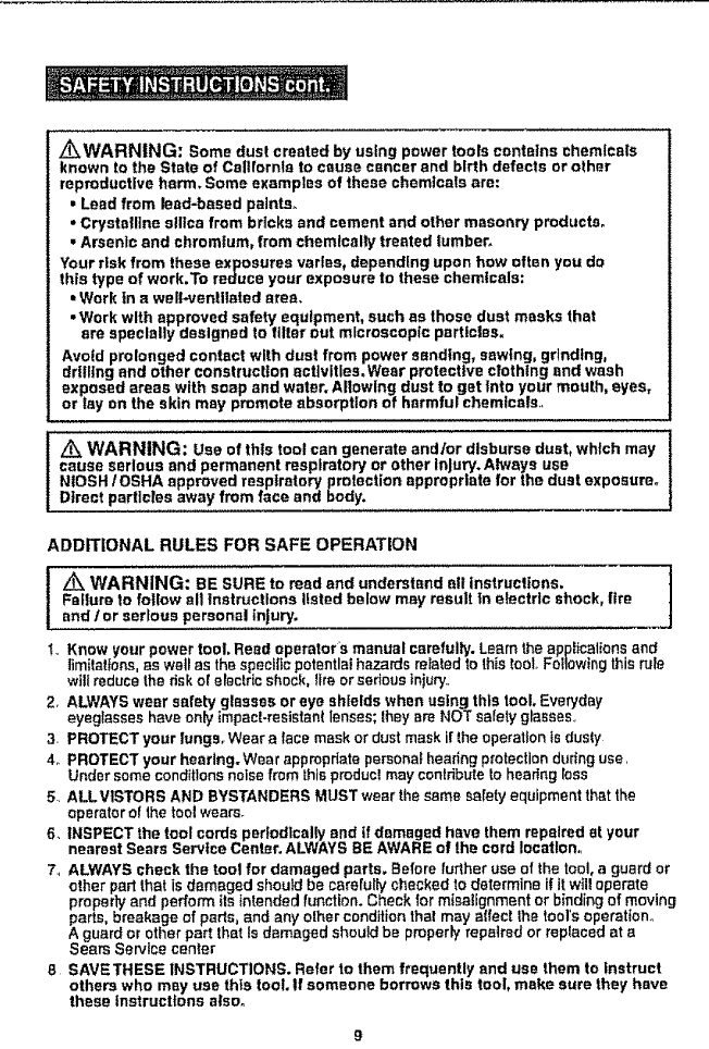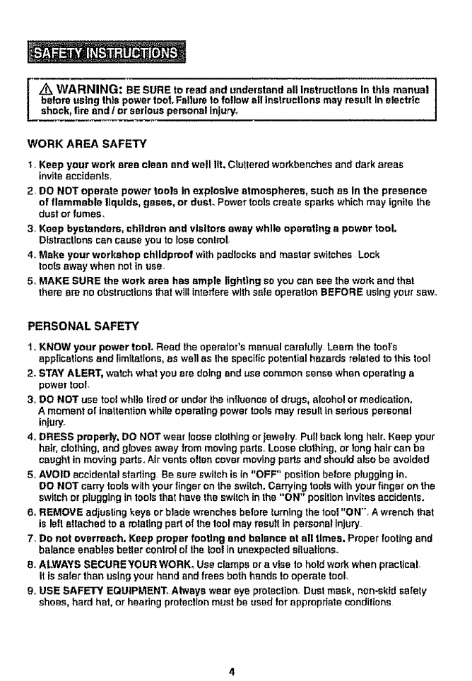 ,-_ WARNING: BE SURE to read and understand all safety instructions in