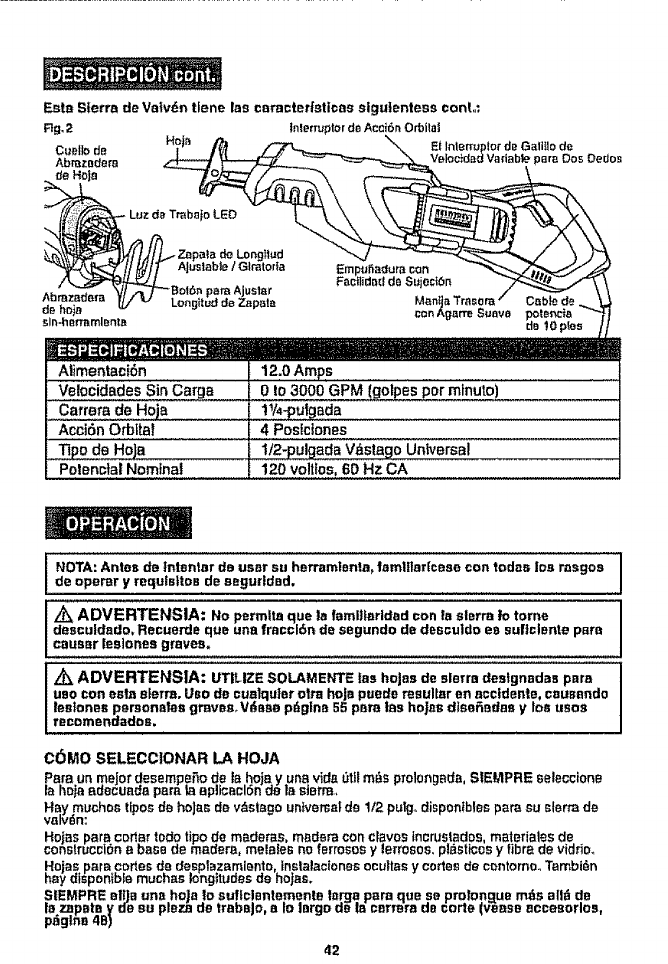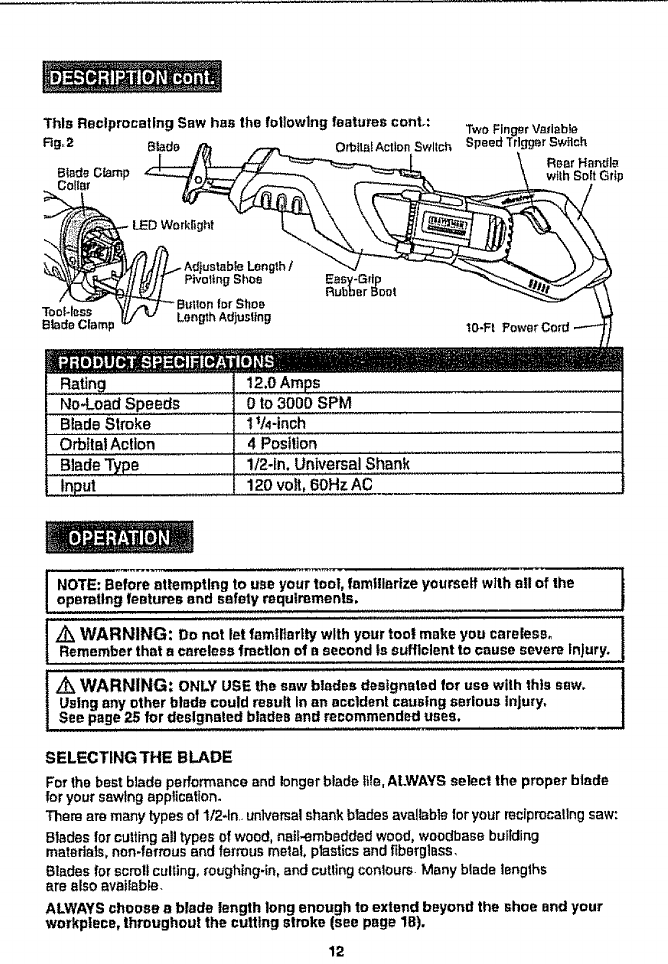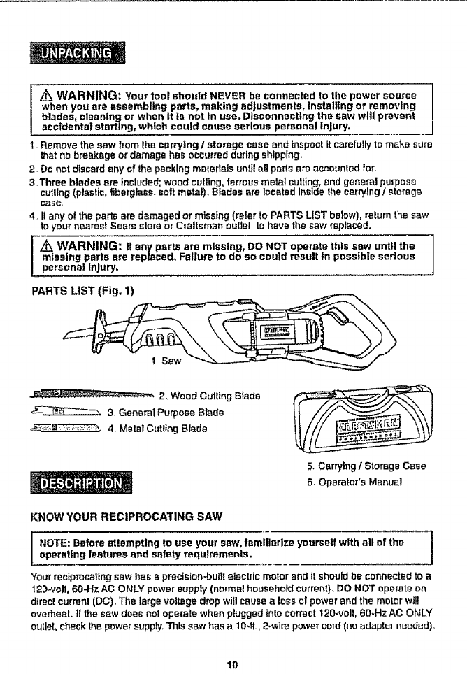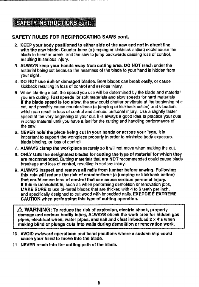 Craftsman 172260430 User Manual SAW RECIPROCATING Manuals And Guides 1008042L