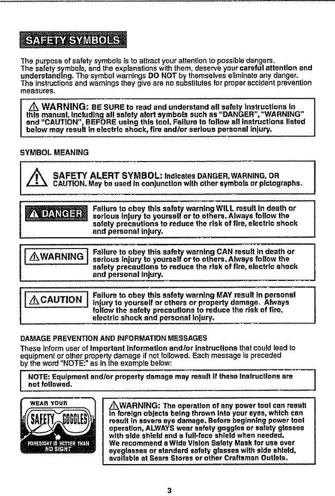 understandlng_ The, symbol warnings DO NOT by themselves eliminate any danger.