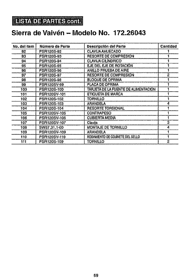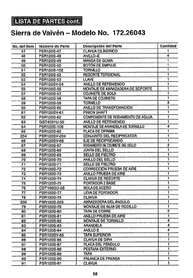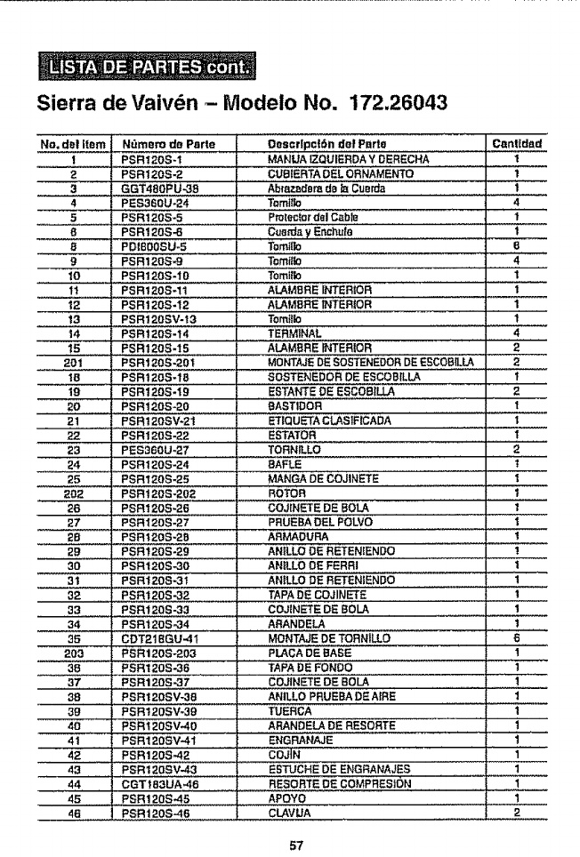..............204 PSR 120SV-,_D4 _ CONJU_ DEL REctPR|CATOR .......................... 1......