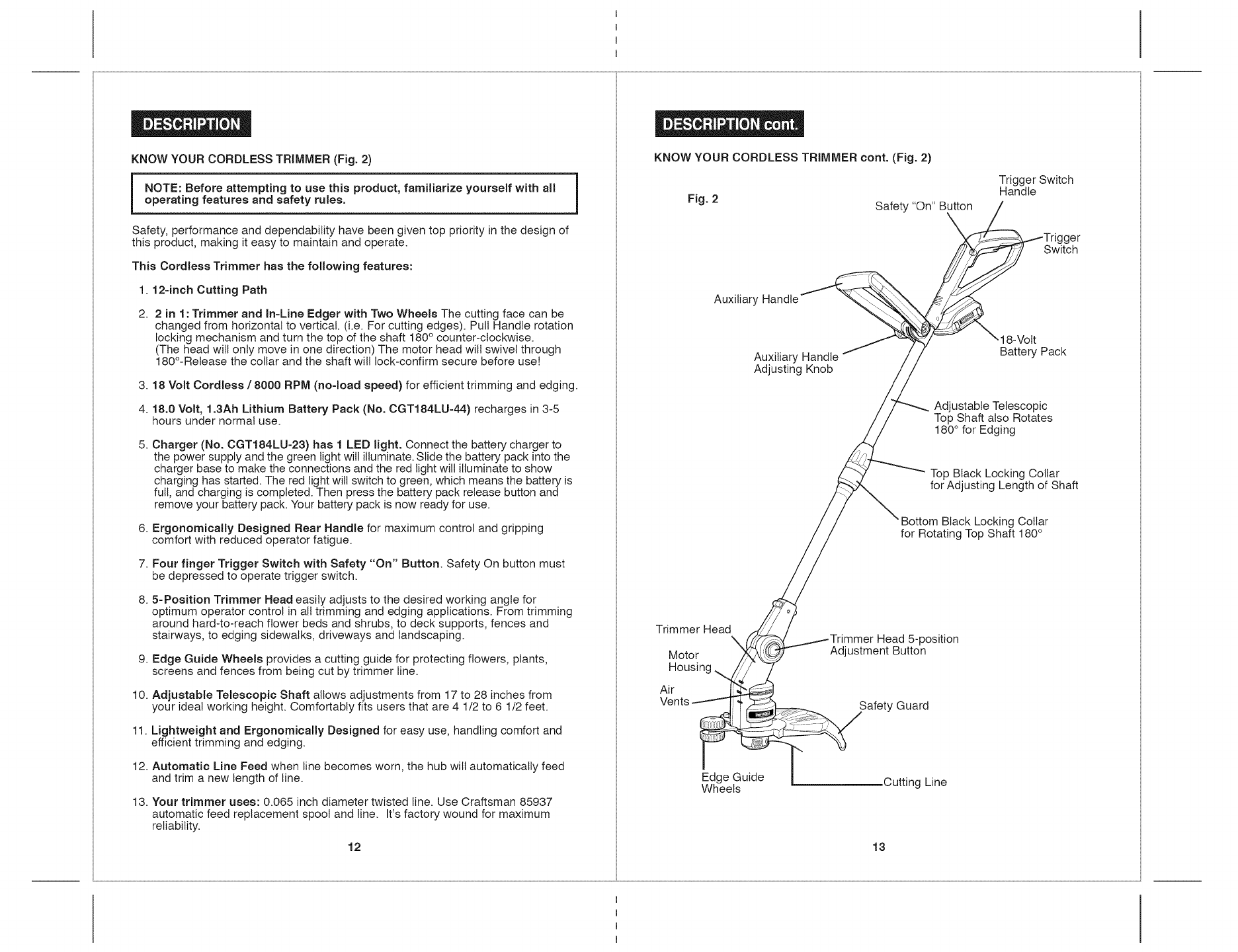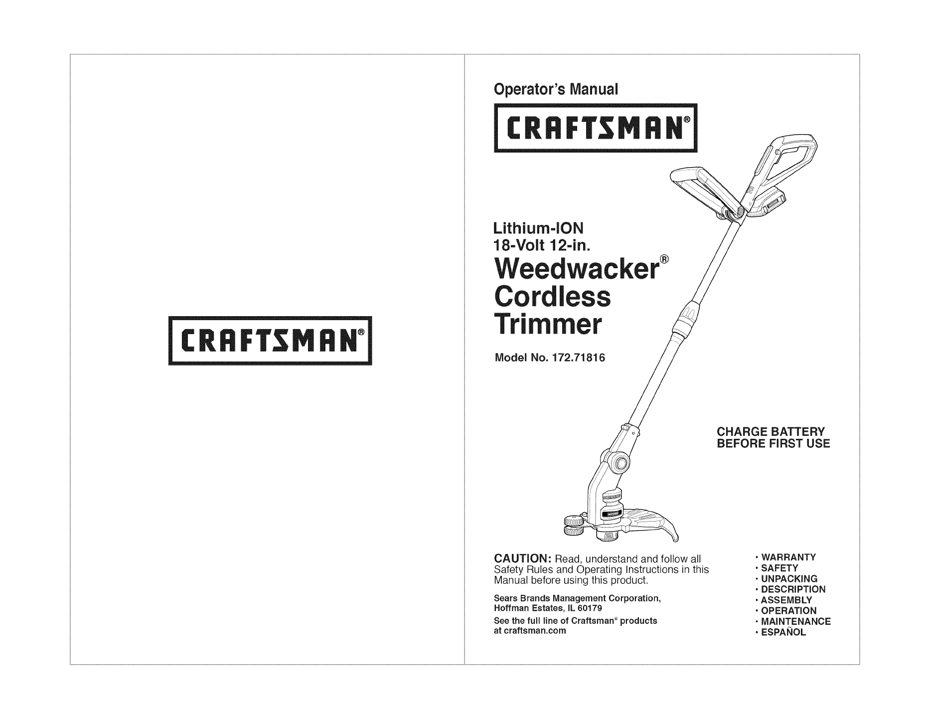 Craftsman 172718160 User Manual TRIMMER Manuals And Guides 1408200L