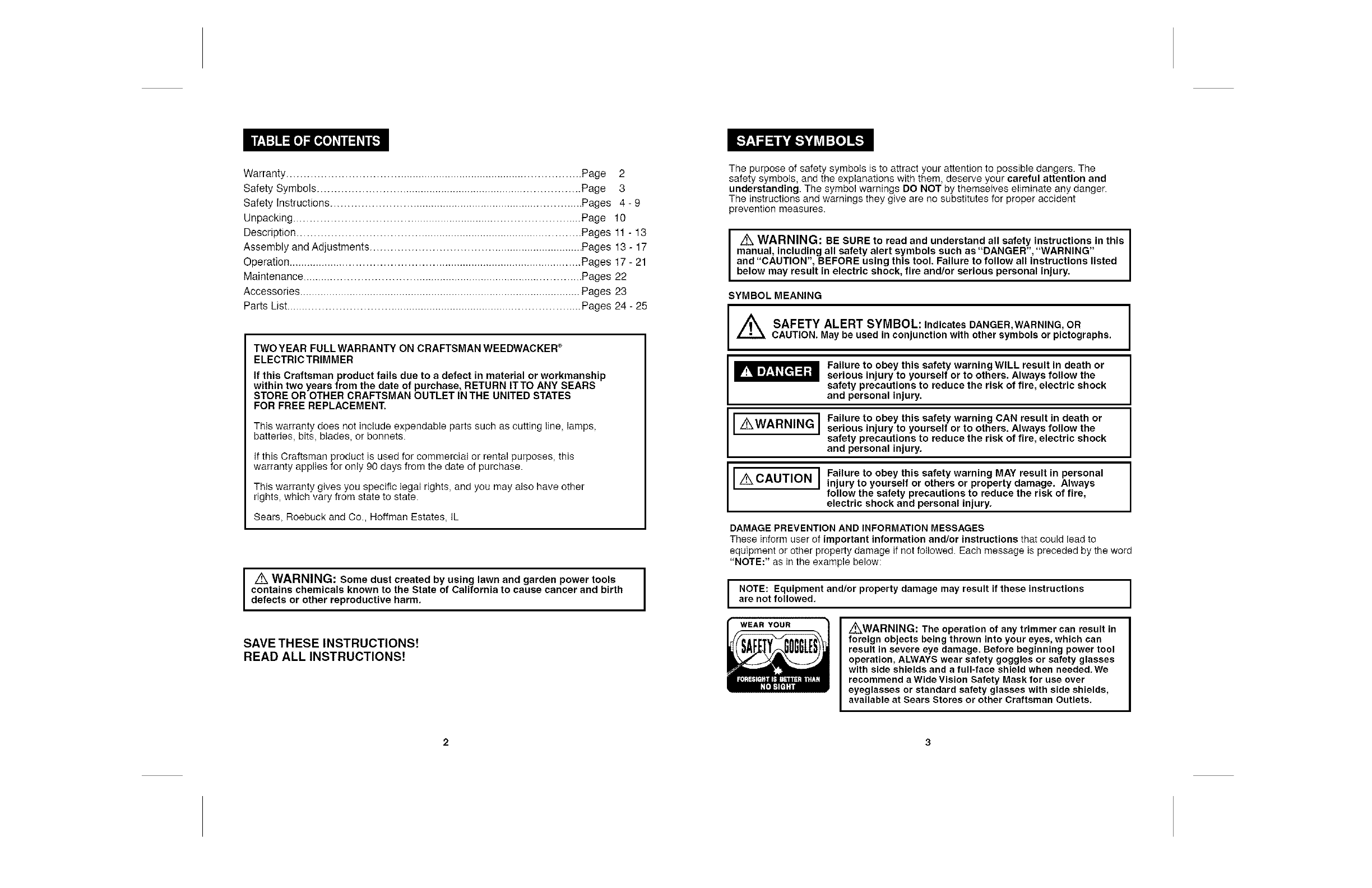 Craftsman 17274545 User Manual WEEDWACKER Manuals And Guides L0807116