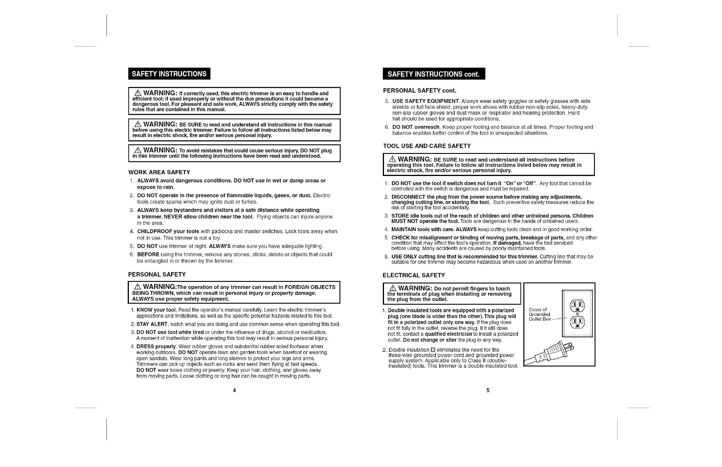 before using this electric trimmer. Failure to follow all instructions listed below may