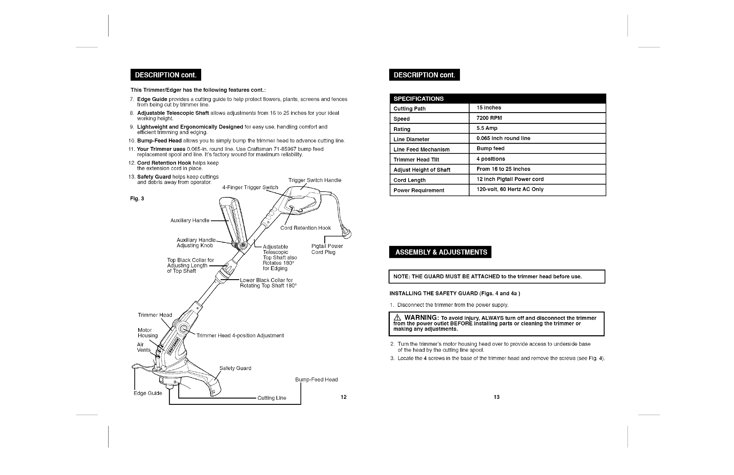 CRAFTSMAN Line Trimmers/Weedwackers, Electric Manual L0807116 CRAFTSMAN Line Trimmers/Weedwackers, Electric Owner's Manual, CRAFTSMAN Line Trimmers/Weedwackers, Electric installation guides