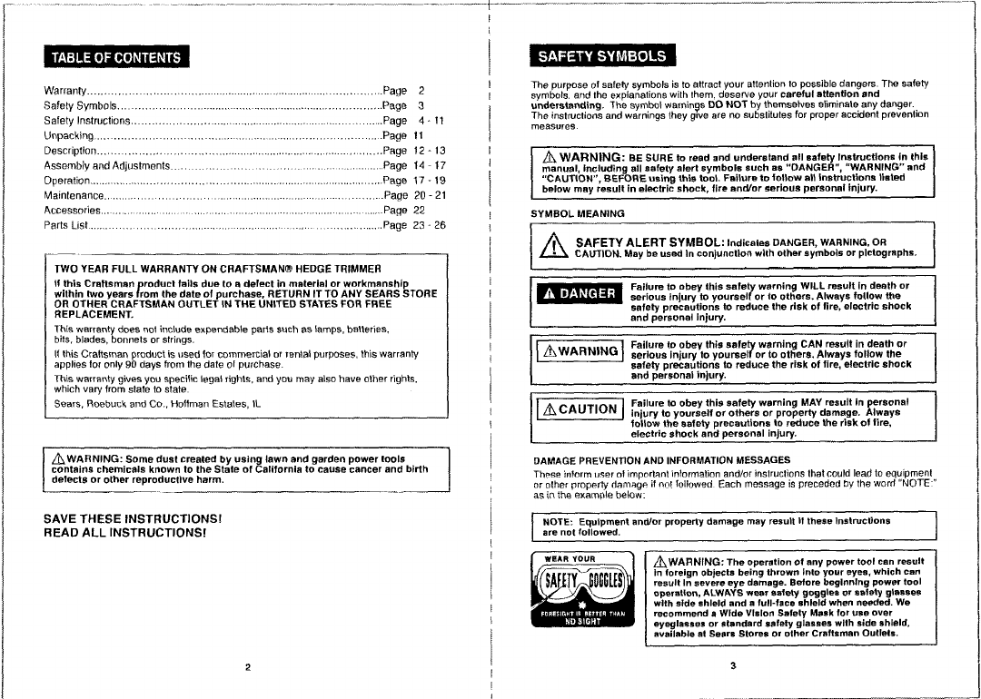 ]3NO YEAR FULL WARRANTY ON CRAFTSMAN® HEDGE TRIMMER