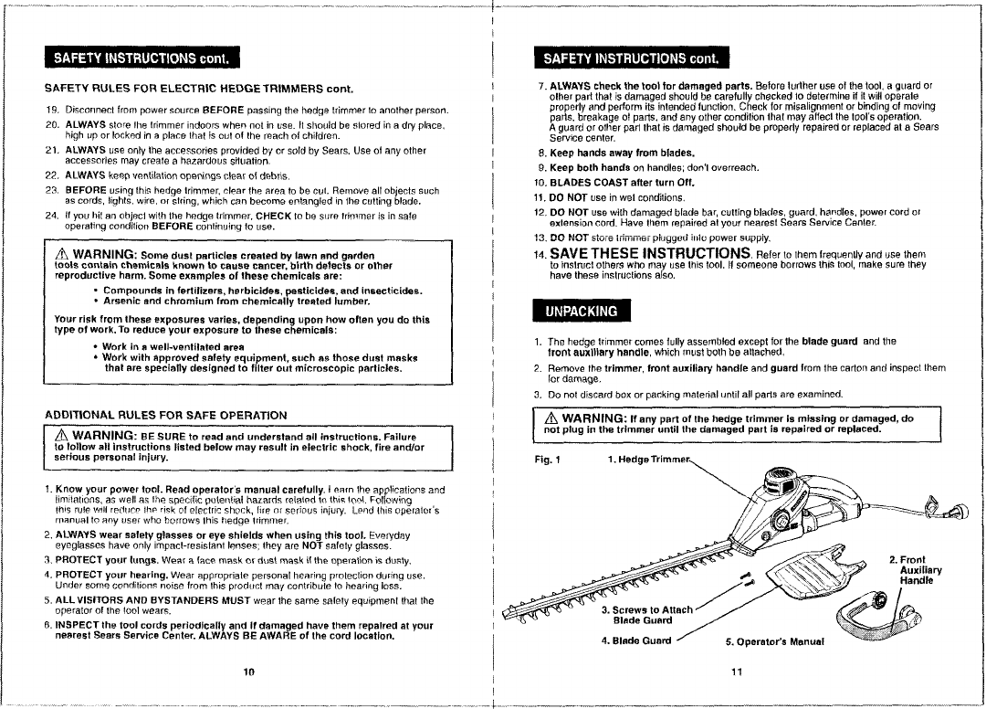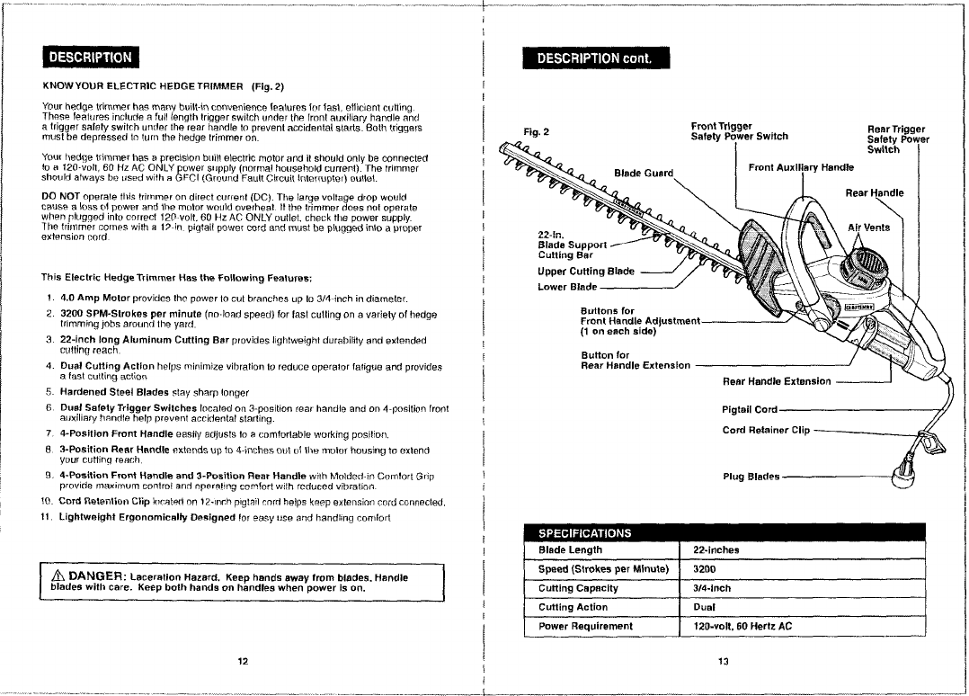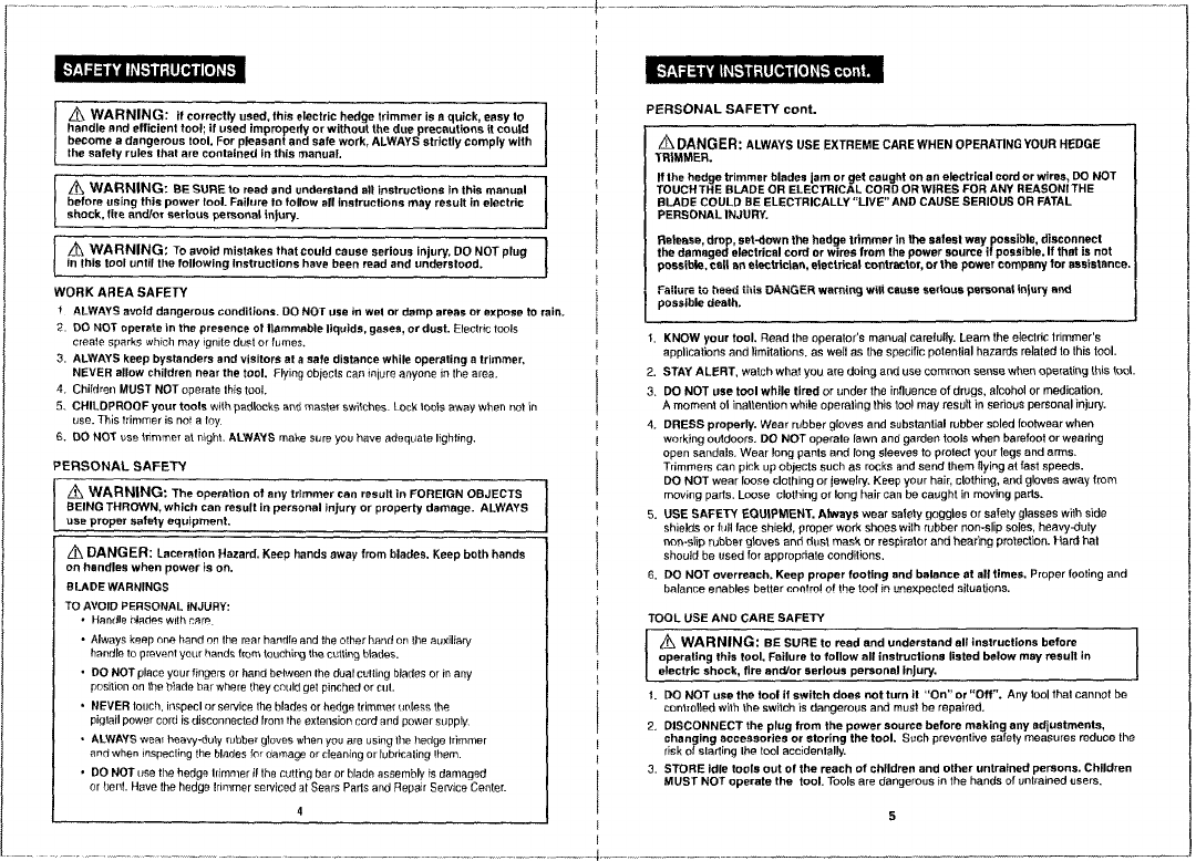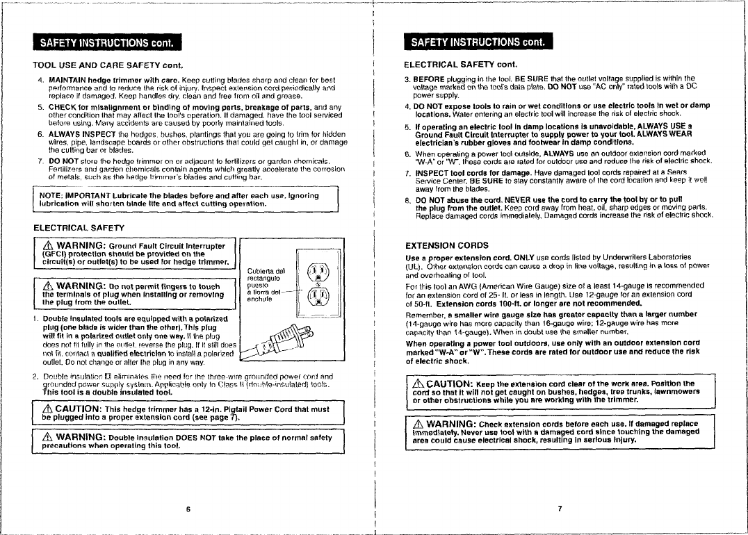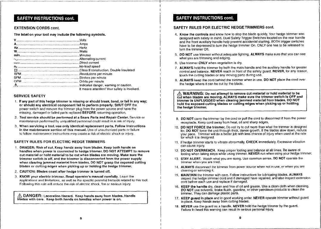 CRAFTSMAN Hedge Trimmer, Electric Manual L0810028 CRAFTSMAN Hedge Trimmer, Electric Owner's Manual, CRAFTSMAN Hedge Trimmer, Electric installation guides