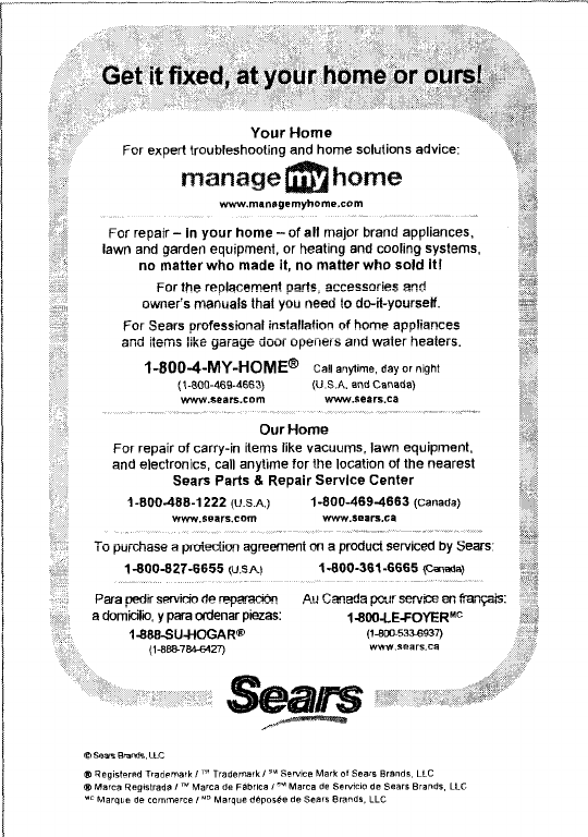 ® Registered Trademark !T,_Trademark /_ Service Mark of Sears Brands. LLC