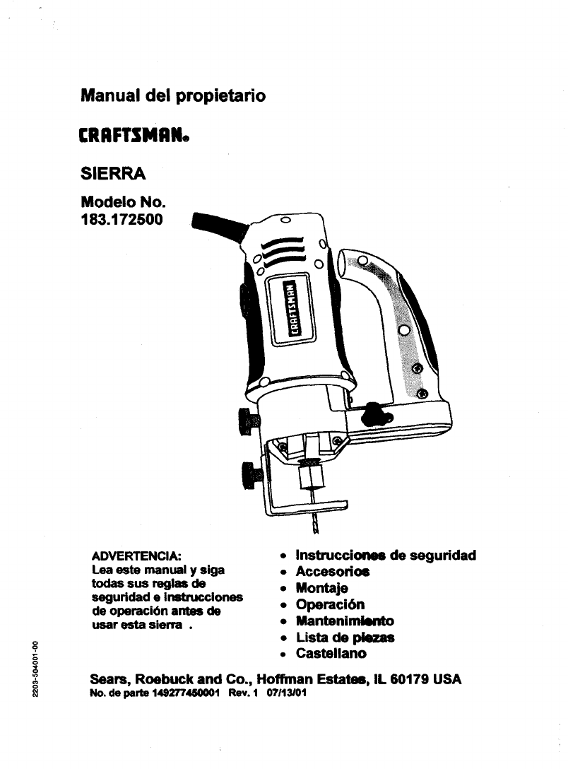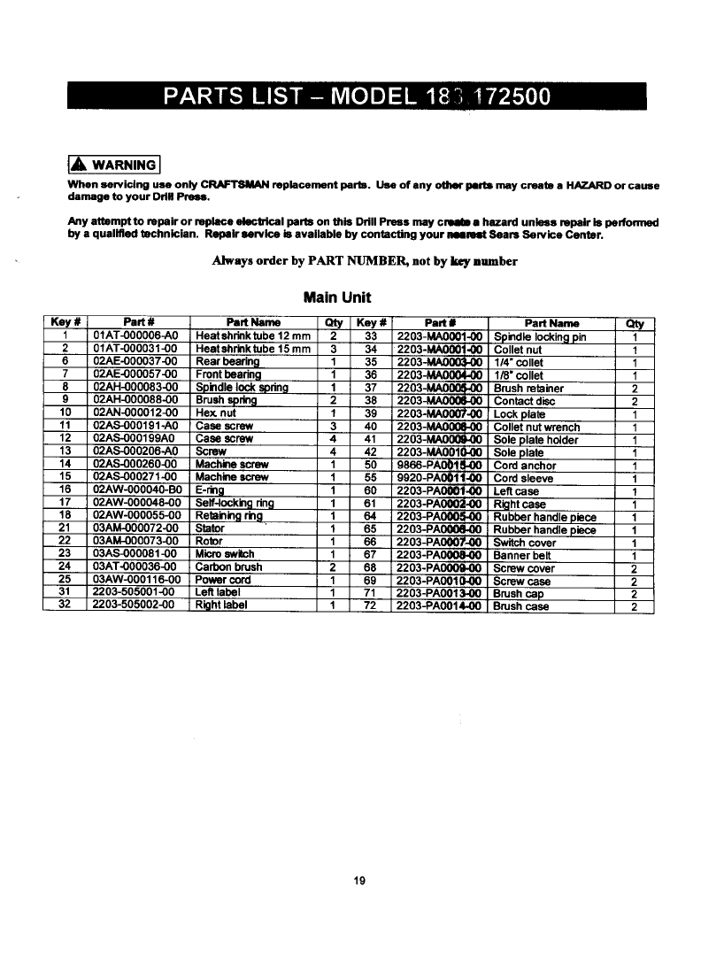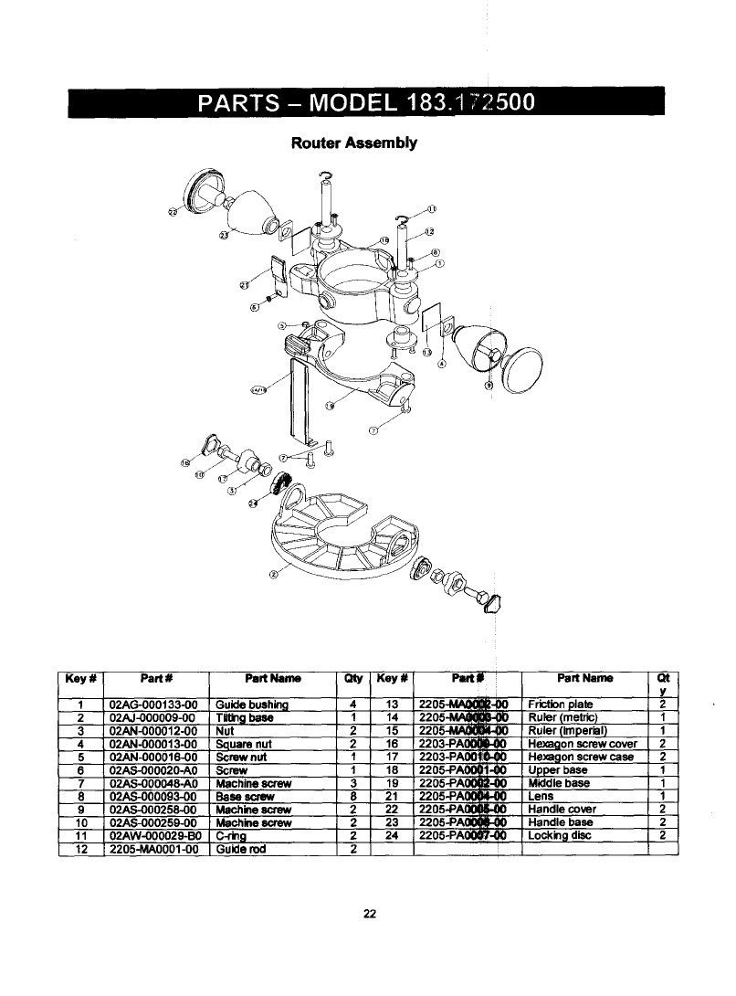User Manual: Craftsman 183172500 183172500 CRAFTSMAN ROUTER - Manuals and Guides View the owners manual for your CRAFTSMAN ROUTER #183172500. Home:Tool Parts:Craftsman Parts:Craftsman ROUTER Manual