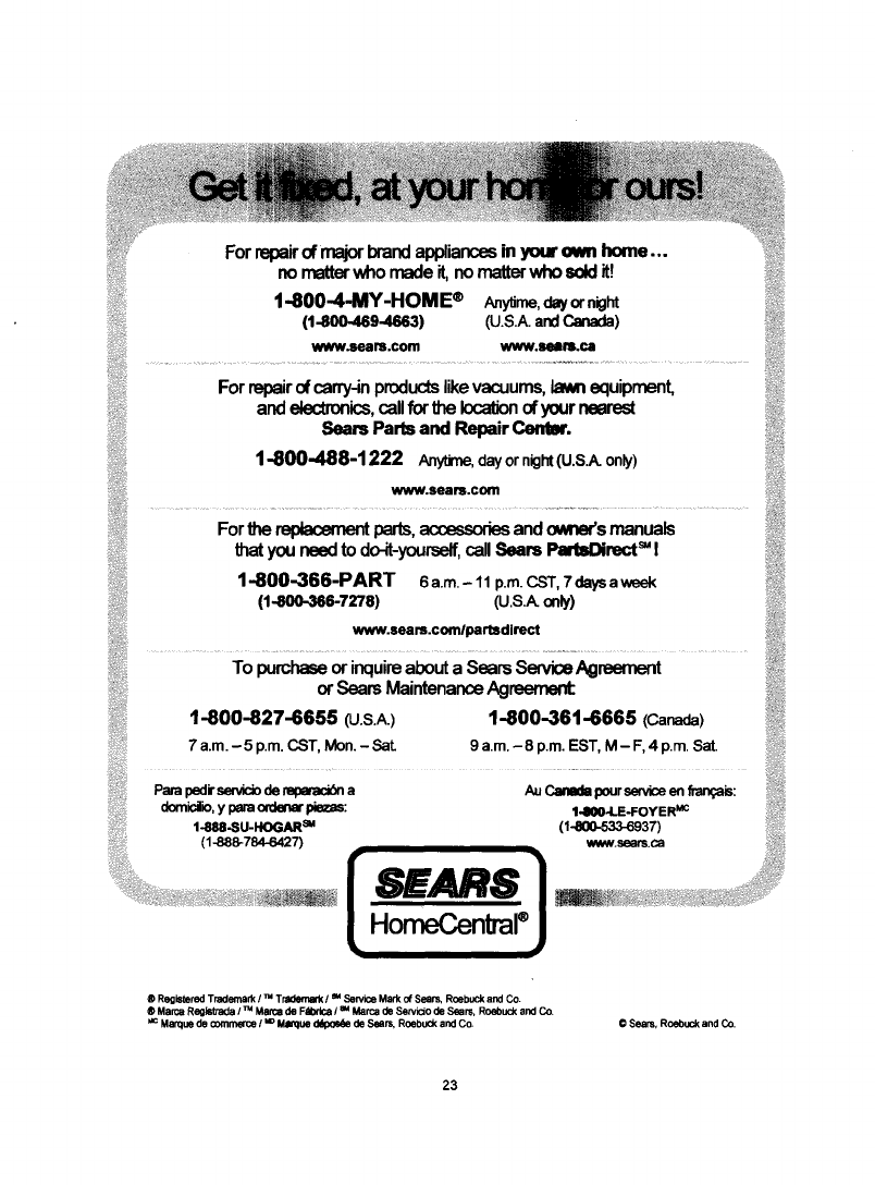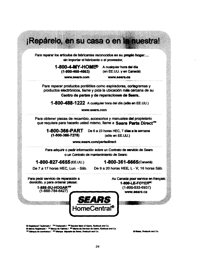 Para adquirir o pedir infonnaci_ solxe un Contrato de =enddo de Sears