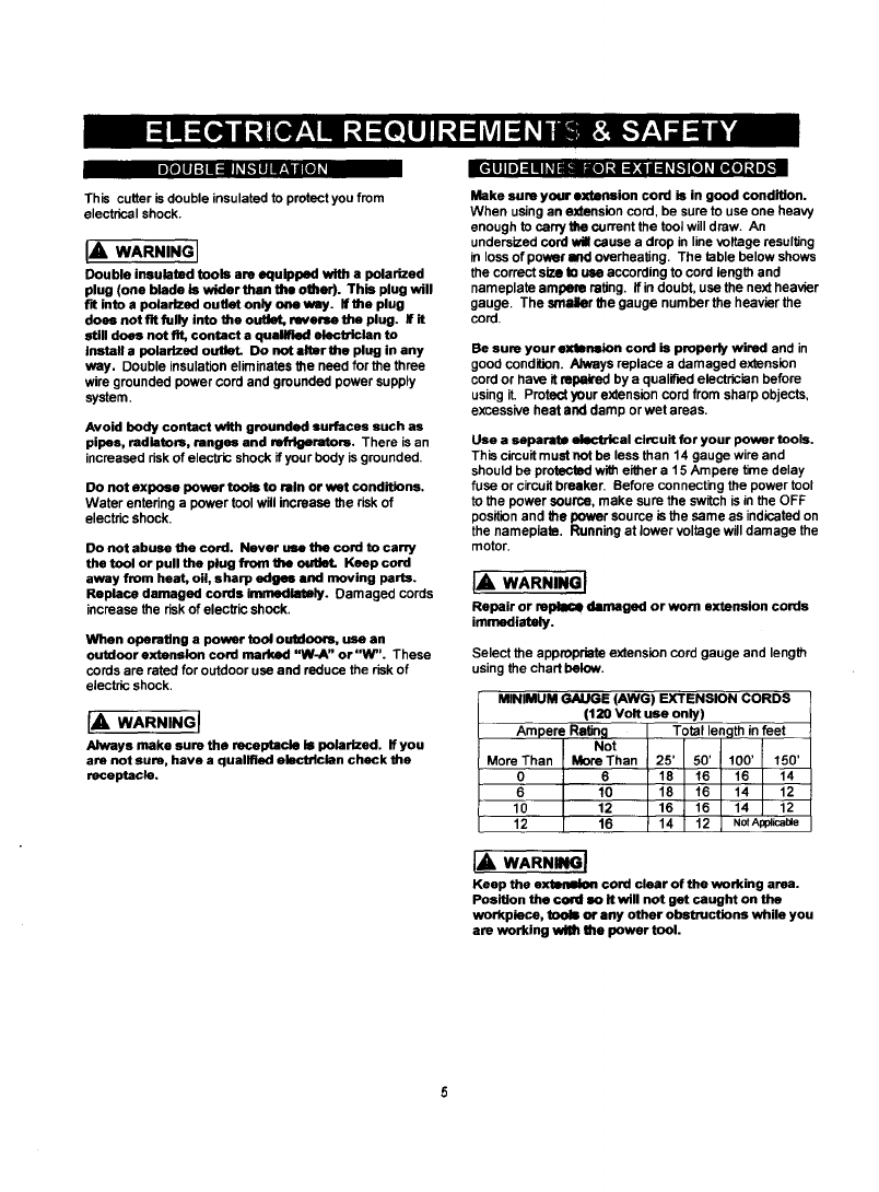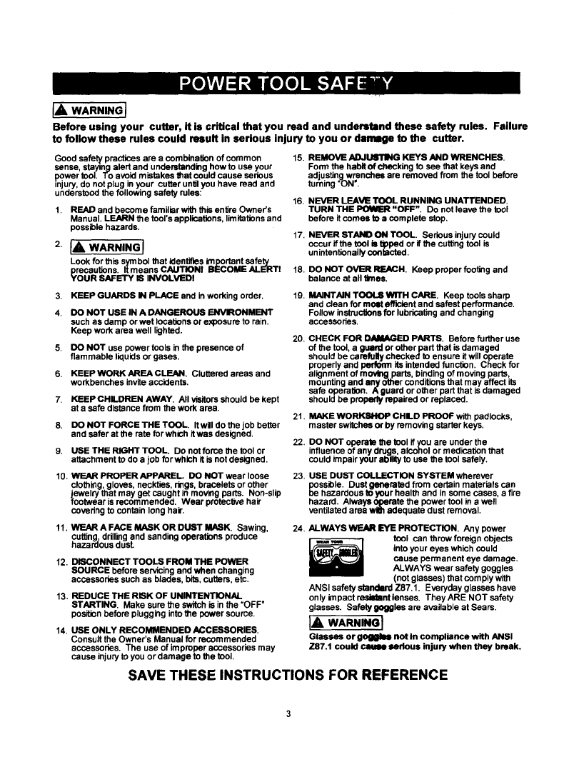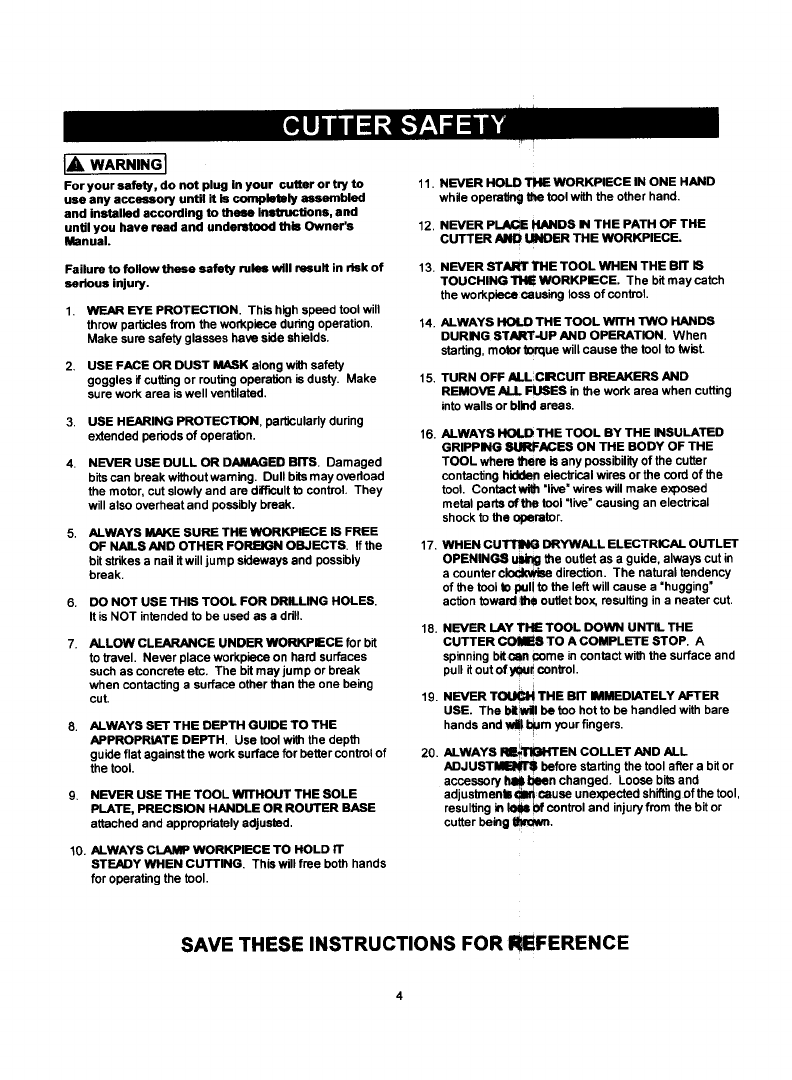 to follow these rules could result in serious injury to you or damage to the cutter.