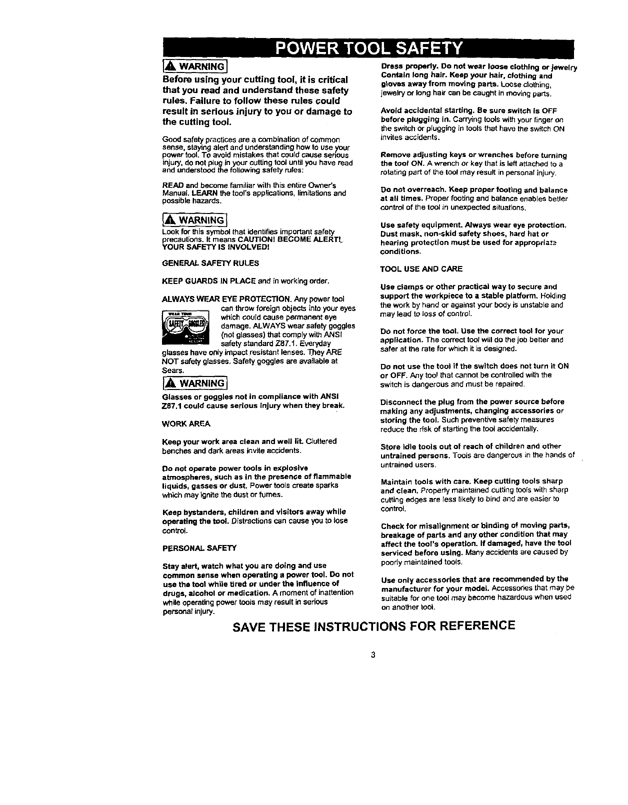 ALWAYS WEAR EYE PROTECTION. Any power
