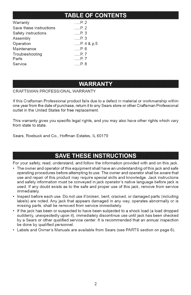 Craftsman 21450156 1205004L User Manual JACK HYDRAULIC Manuals And Guides