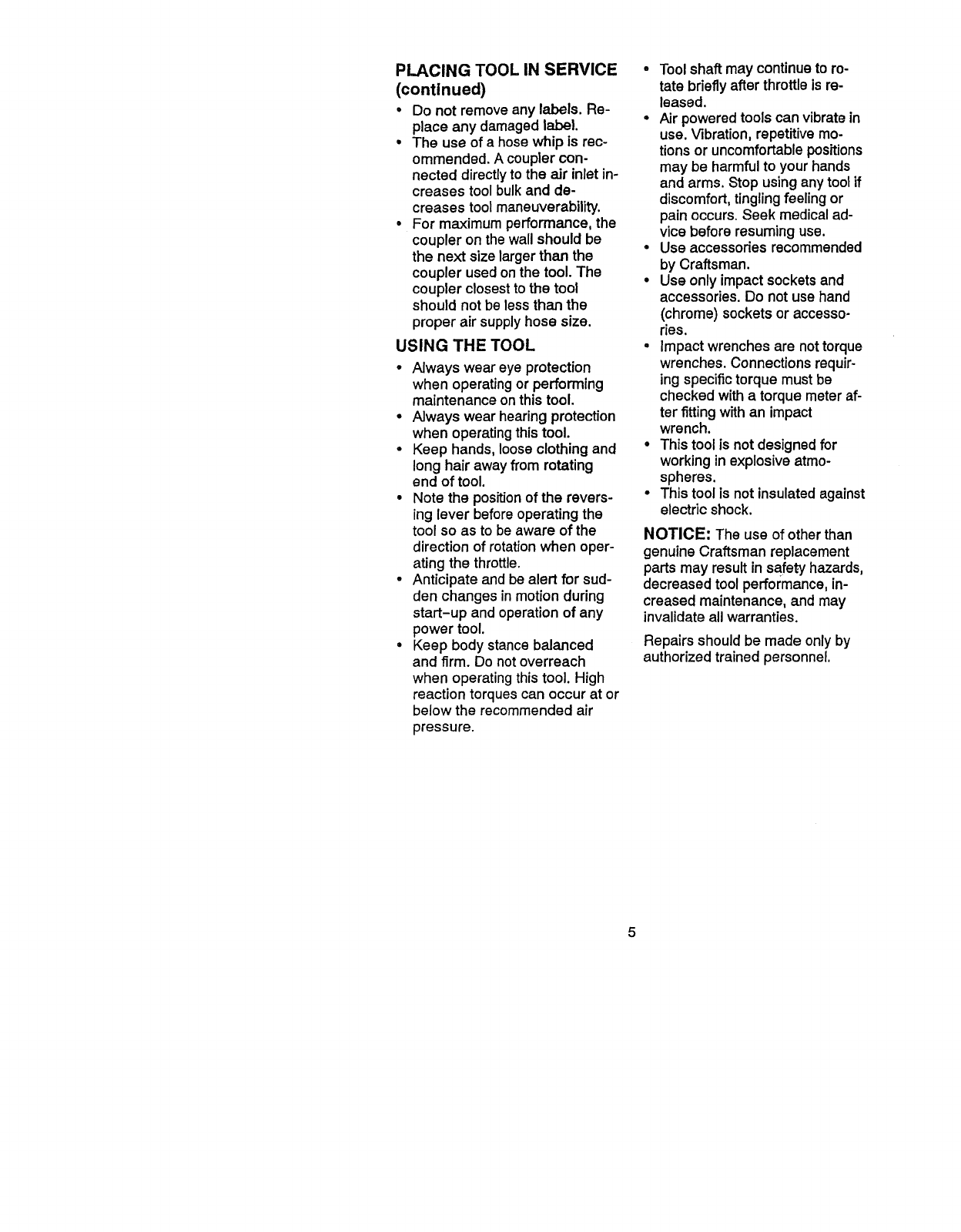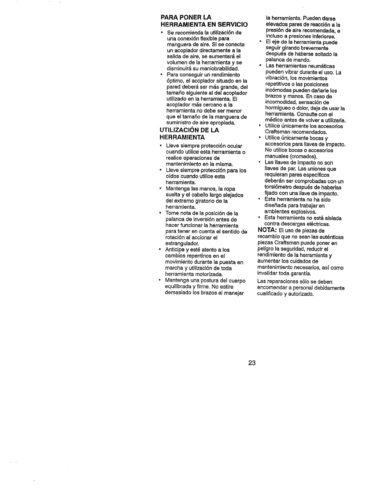 Craftsman 235199050 User Manual PISTOL GRIP IMPACT WRENCH Manuals And Guides L0811241