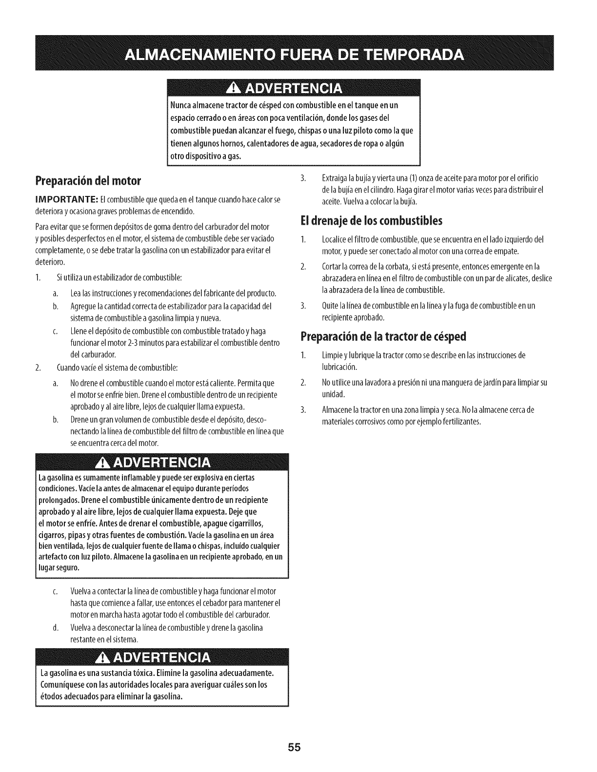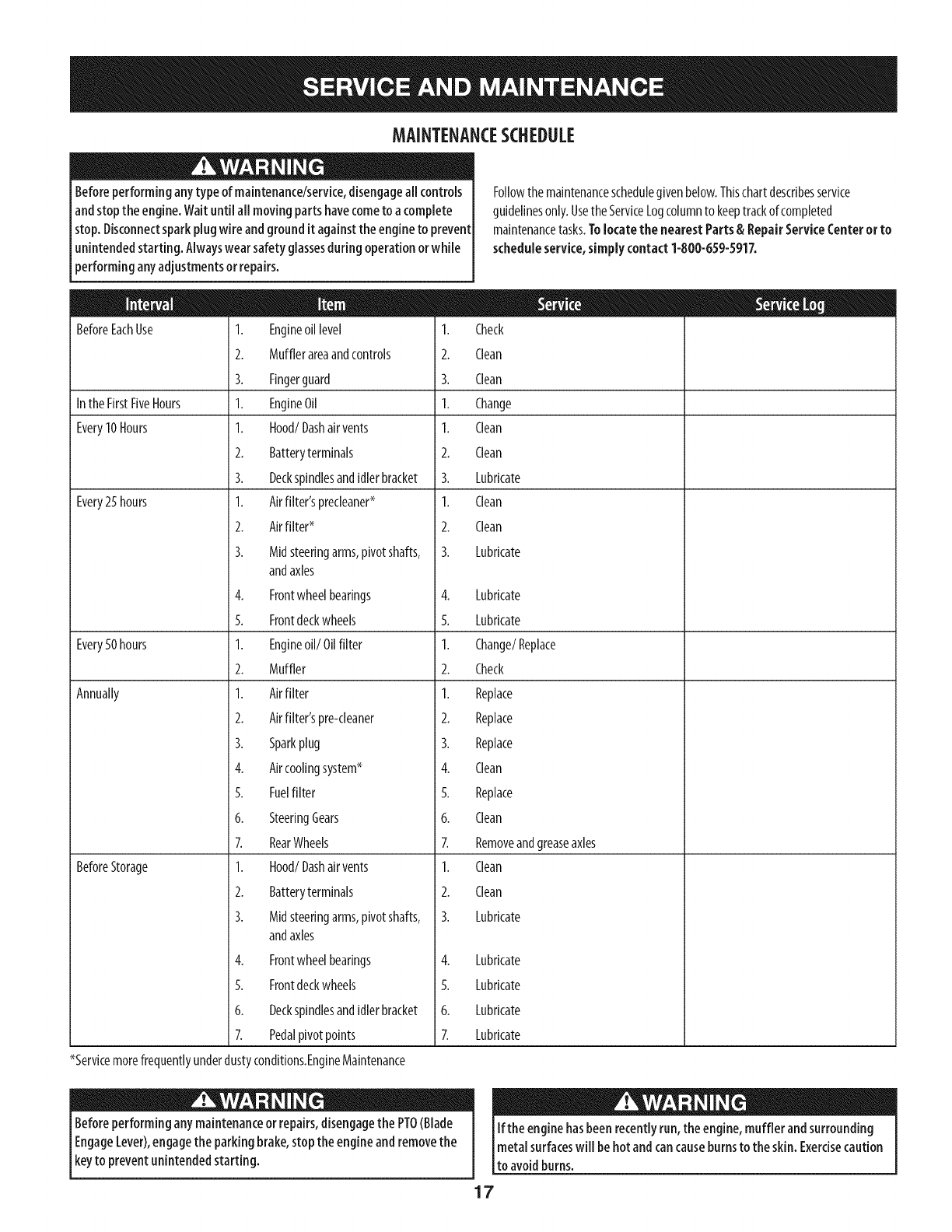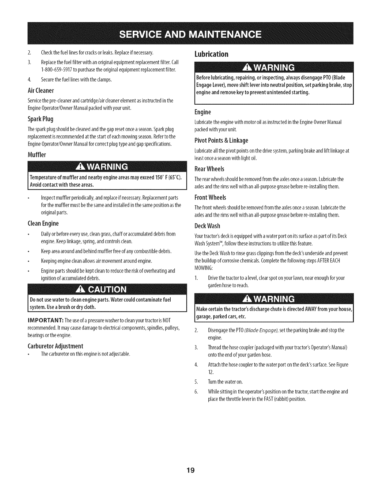 storage,failureto usethe propergradeandamountof engineoil, failureto keepthe deckclearof flammabledebris,orfailureto maintainthe
